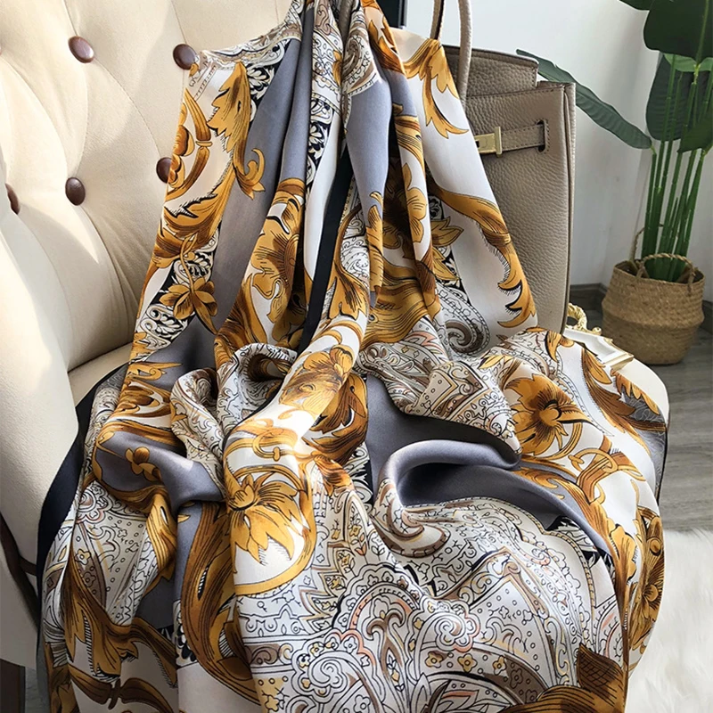 Женский шарф, шелковые головные уборы, бандана с большим принтом, модные женские зимние шарфы для волос, пляжные шали, шейный платок, 2020 фуляр