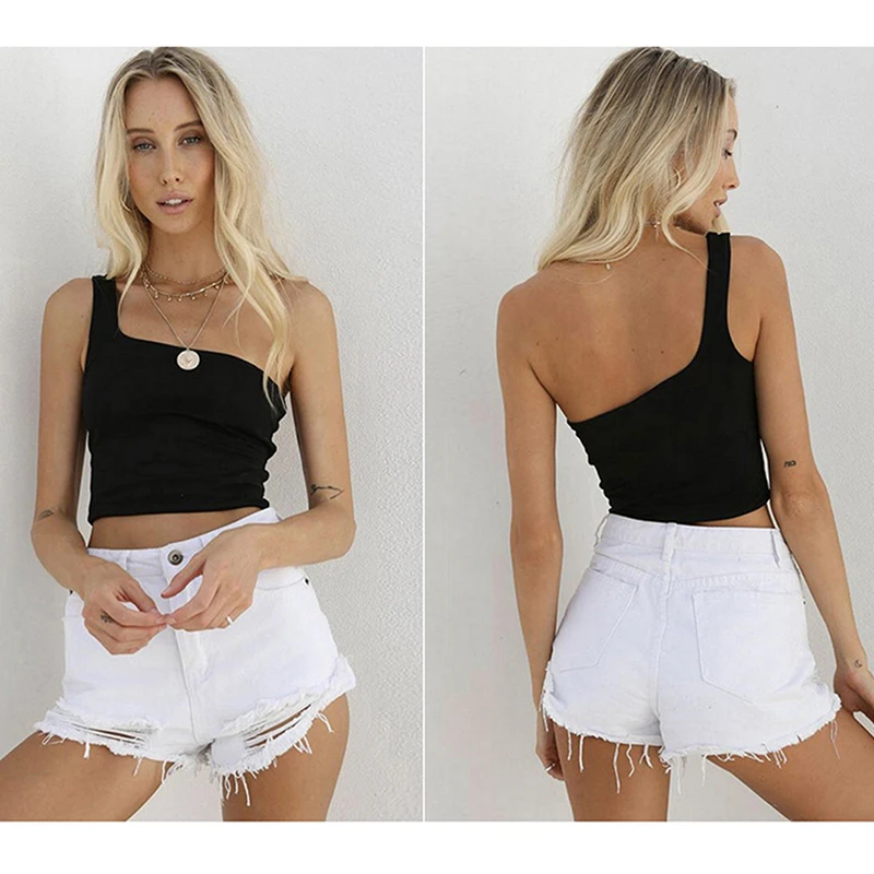 Женский укороченный топ на одно плечо, майка без рукавов, летняя майка с открытыми плечами, летняя женская модная одежда, женский пляжный жилет