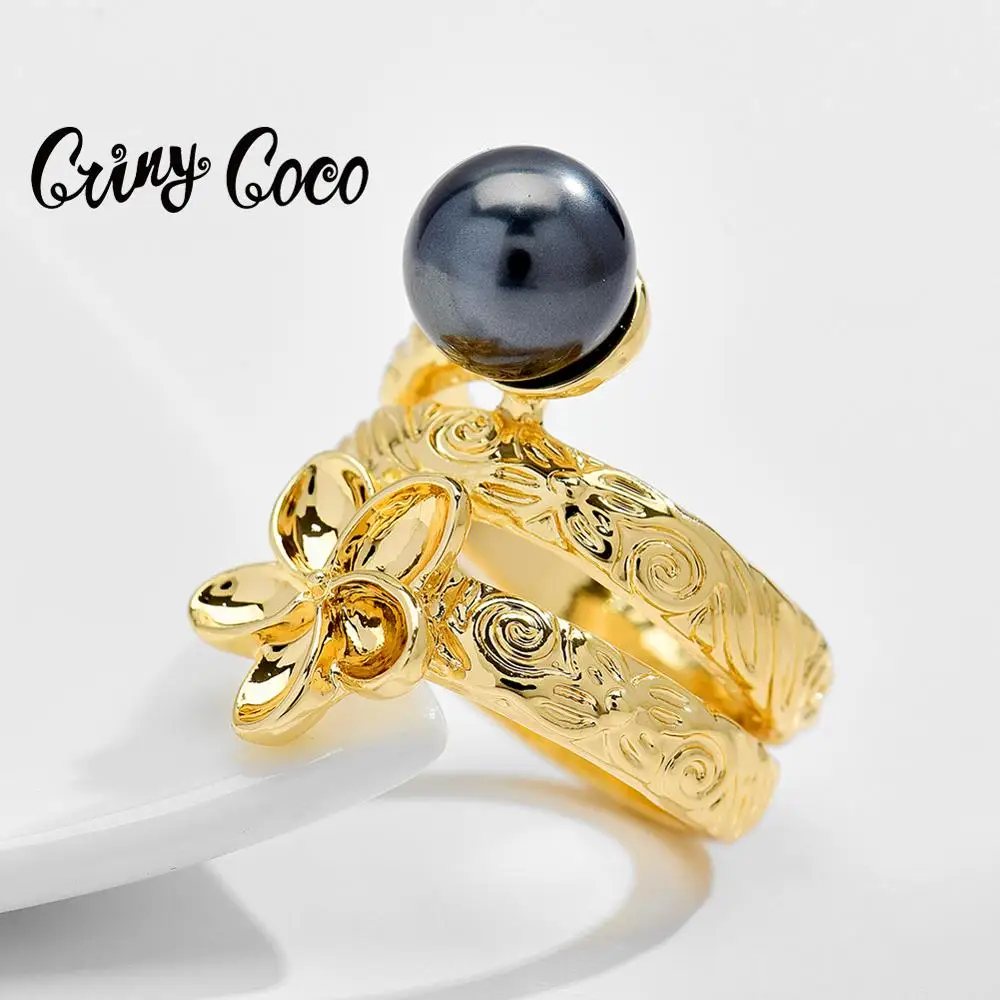 Cring Коко золотые кольца модные женские Гавайский цветок Плюмерия украшения новый дизайн жемчужное кольцо на палец для обручального кольца для женщин Свадебная вечеринка