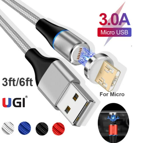 Магнитный кабель UGI с поворотом на 360 , 3A, зарядное устройство для быстрой зарядки, Micro USB-кабель для Android, Xiaomi RedMi, нейлоновый Плетеный, Лидер продаж 2020, серебристый