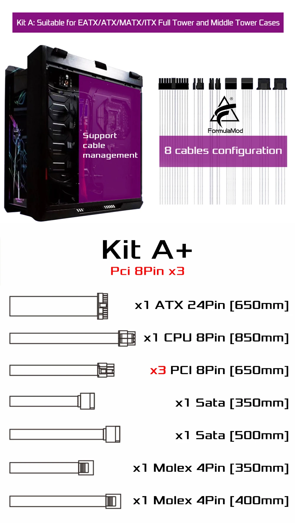 Great cables. But I recommend taking Kit A plus with a margin. Fits PM850i with yellow box. Cons: Cables are tightly crimped. To lay them evenly, you need a lot of ties. Everything else is fine. No problems with heating under load.