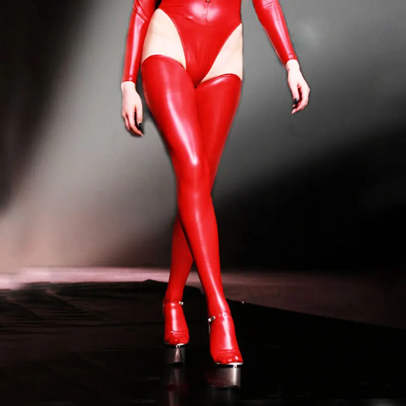 Размера плюс чулки женские из латекса и ПВХ, пикантные чулки высотой до бедра, женские гетры, пикантные колготки, кожаные чулки до колена