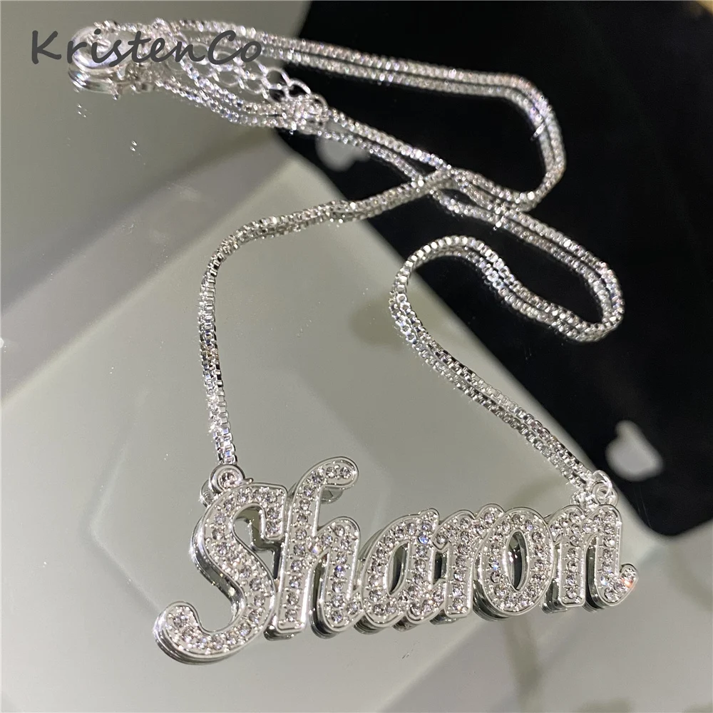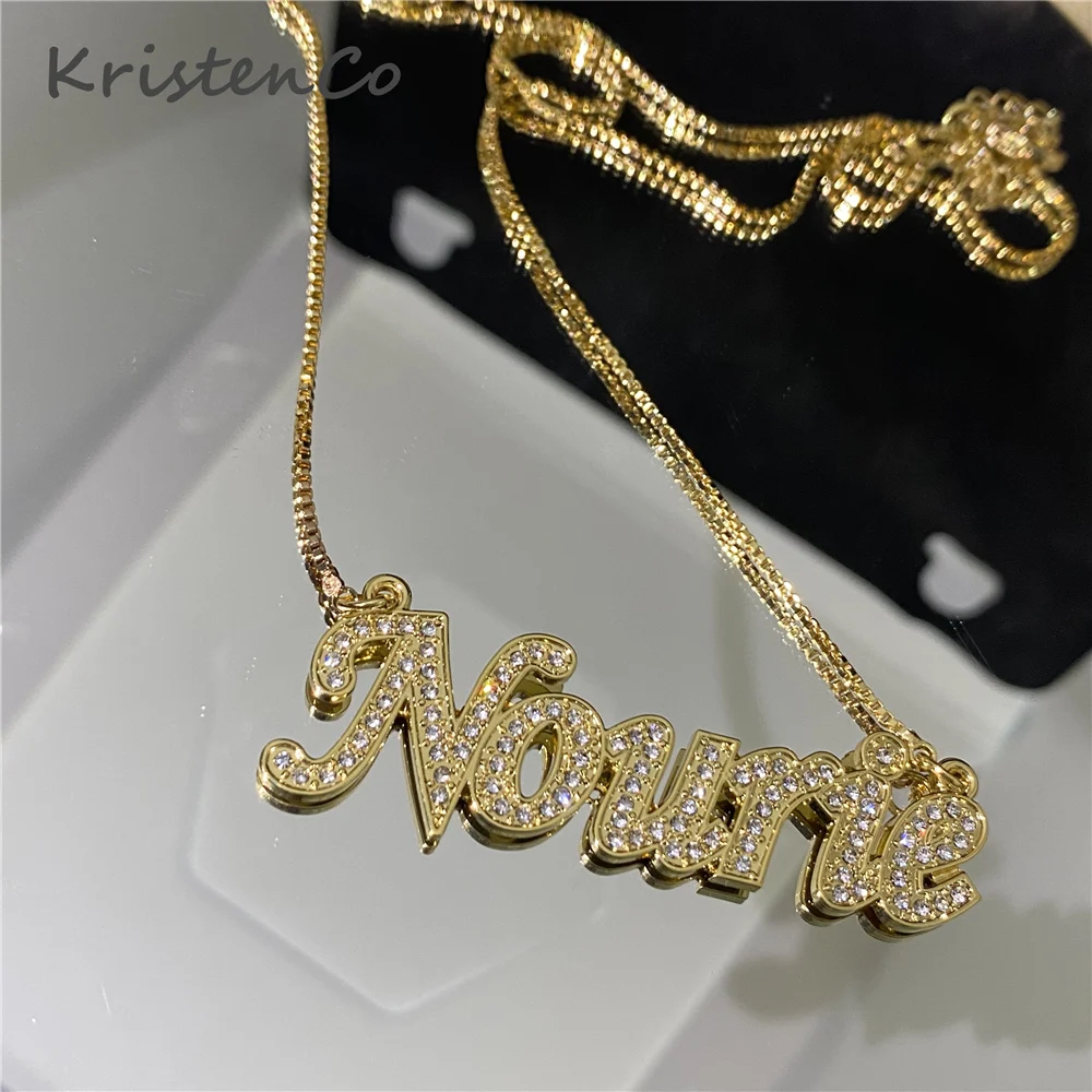 Ожерелье с именем из циркония KristenCo, цепочка из нержавеющей стали золотого цвета на заказ, ожерелье с именной табличкой для женщин, подарки