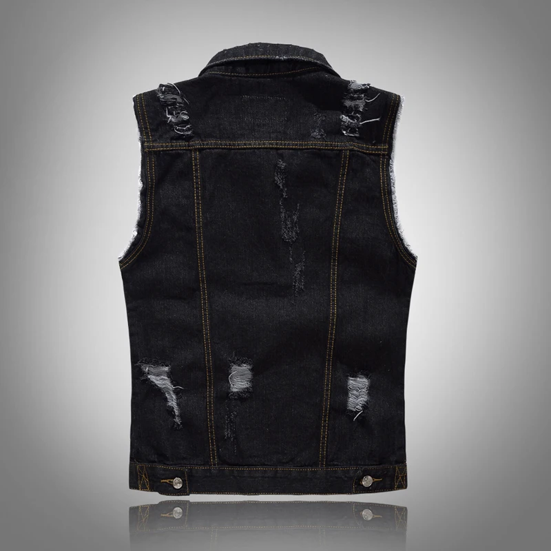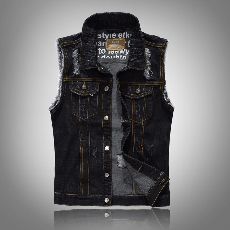 Жилет мужской джинсовый рваный, жилет из денима, Джинсовая безрукав...