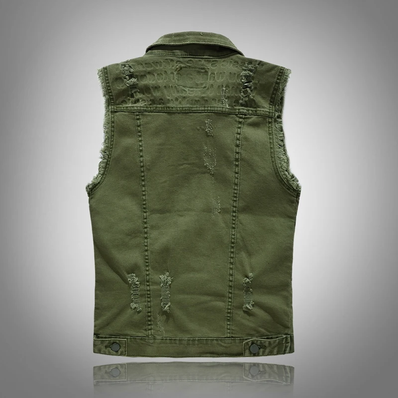 Джинсовый жилет мужской армейского зеленого цвета, рваный жилет из ...
