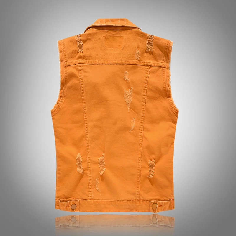 Мужской джинсовый жилет, оранжевая приталенная рваная стрейчевая дж...