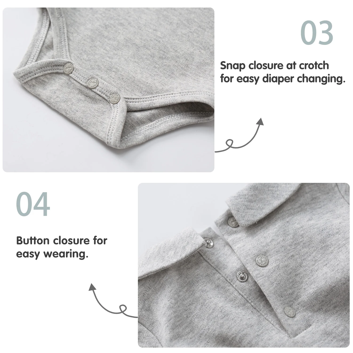 Комбинезон Pureborn для мальчиков и девочек, хлопковый базовый боди с длинным рукавом и воротником Питер Пэн