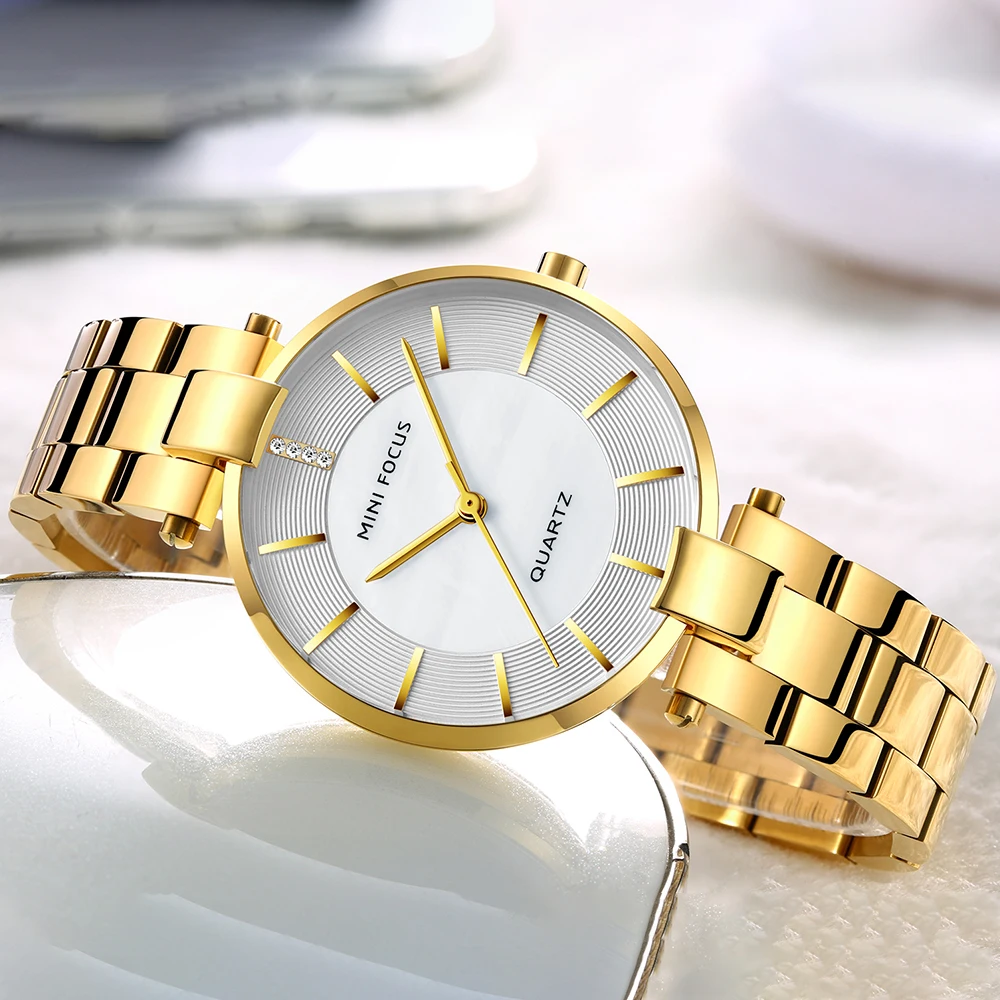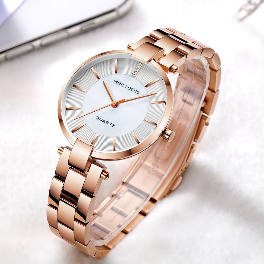 Женские часы MINI FOCUS, минималистичные модные роскошные брендовые дизайнерские водонепроницаемые часы с ремешком из нержавеющей стали цвета розового золота с кристаллами