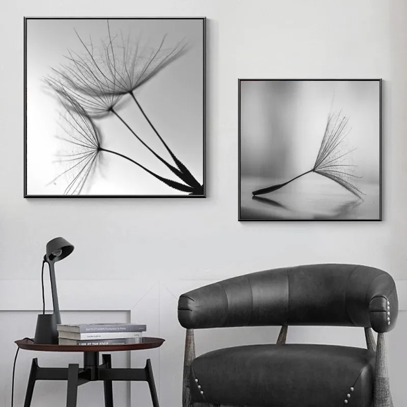 Картина на холсте с изображением одуванчика и цветов, современные черно-белые художественные картины для гостиной, декоративные абстрактные настенные постеры и принты