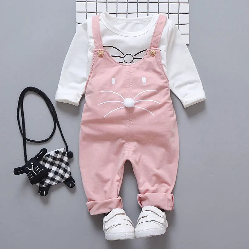 Хлопковые комплекты одежды с мультяшным котом для маленьких девочек...