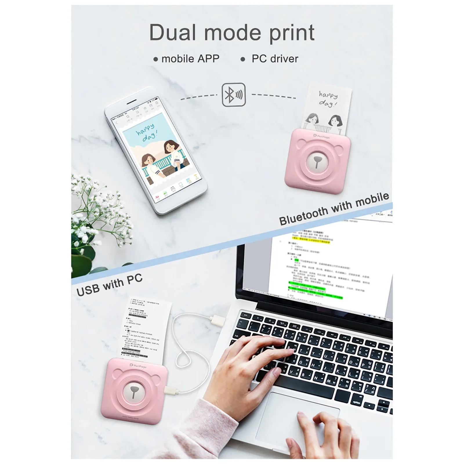 Использование термопечати, что означает, что не нужно никаких чернил для печати! Совместимость со всеми смартфонами на рынке! Компьютеры также могут быть подключены к печати.