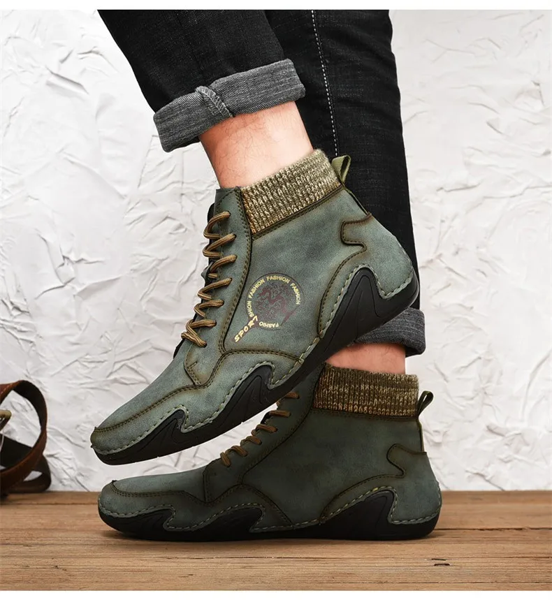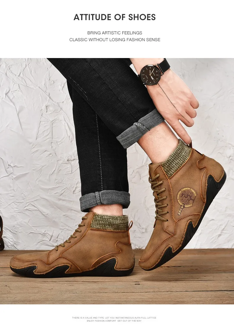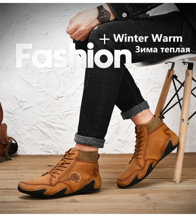 Мужские брендовые зимние ботинки, кожаные ботильоны высокого качества, теплые меховые зимние мужские ботинки, модная Осенняя мужская обувь, размеры 38-48
