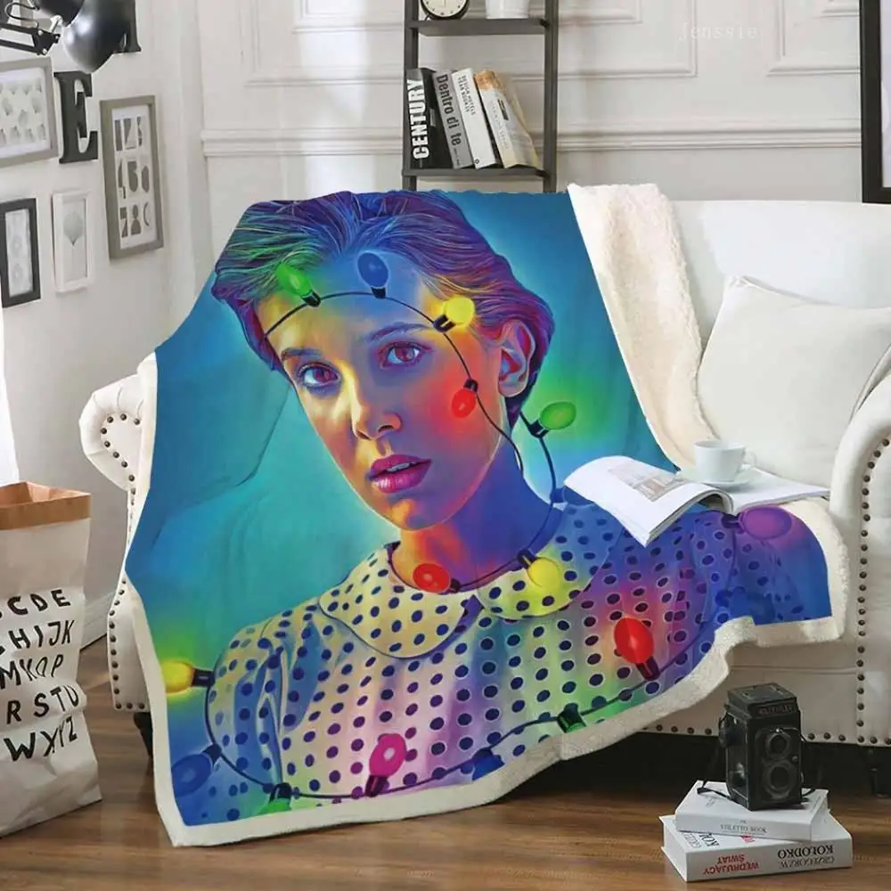 Одеяло с 3D принтом очень странные дела, покрывало из шерпы для див...