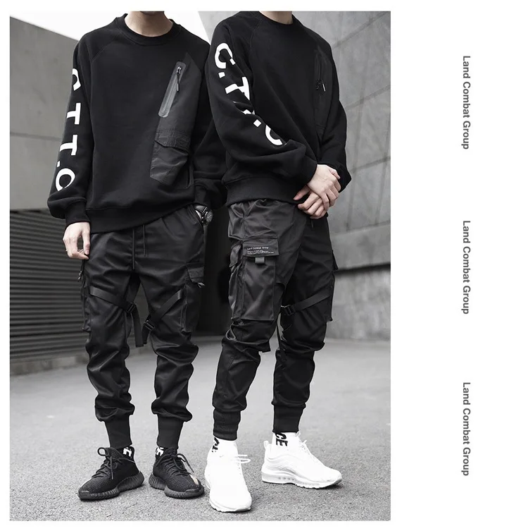 Брюки-карго с лентами для бега уличная одежда 2021 хип-хоп повседне...