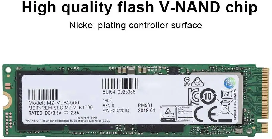 PM981 полностью состоит из полупроводникового устройства и использует флеш-память NAND, которая обладает высокой надежностью и высокой технологией в небольшом форм-факторе для использования SSD и поддержки периферийных компонентов Interconnect Express (PCIe) стандарт интерфейса 3,0 до 4 полос показывает гораздо более высокую производительность по сравнению с предыдущими SSDs SATA.