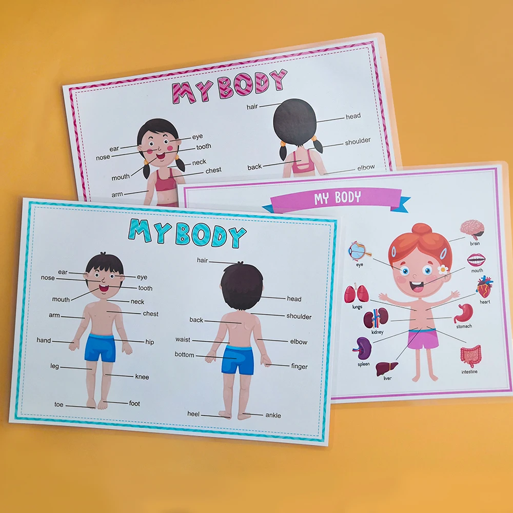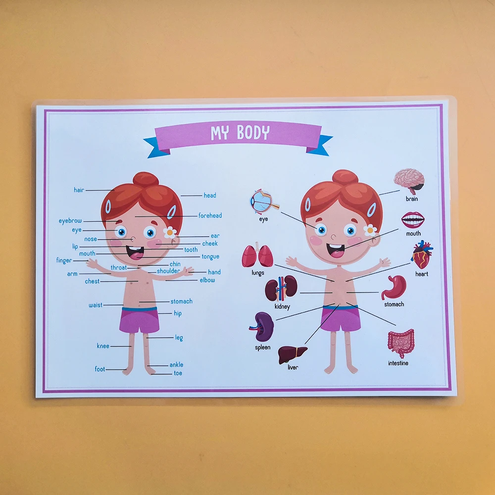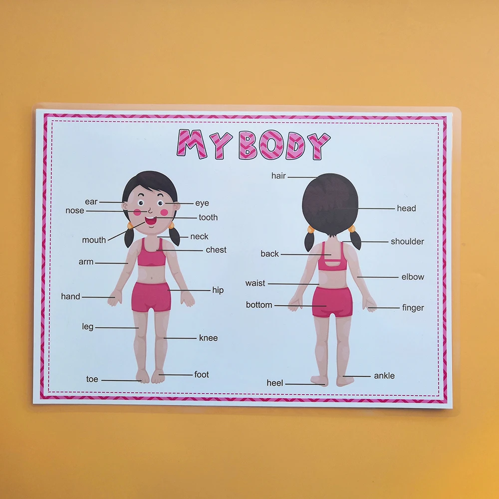 Плакат A4 по частям тела, домашние товары, учебный плакат, для детей дошкольного возраста, украшение для классной комнаты, игрушки Монтессори, карточки