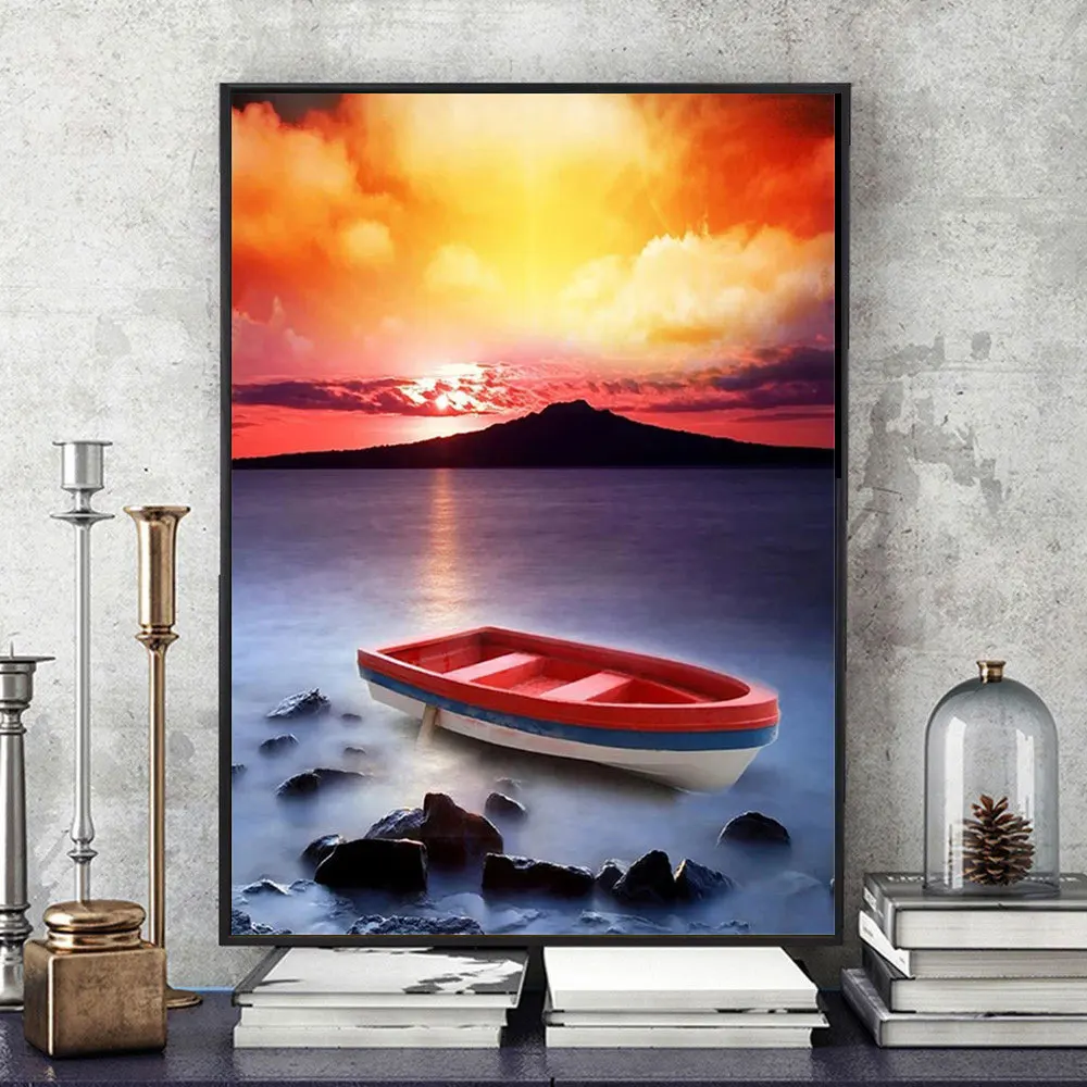 Картина 5d из страз HUACAN, закат, мозаика, природа, картины для Стразы, алмазная вышивка, вышивка крестиком, пейзаж, настенное искусство
