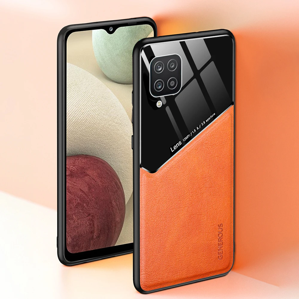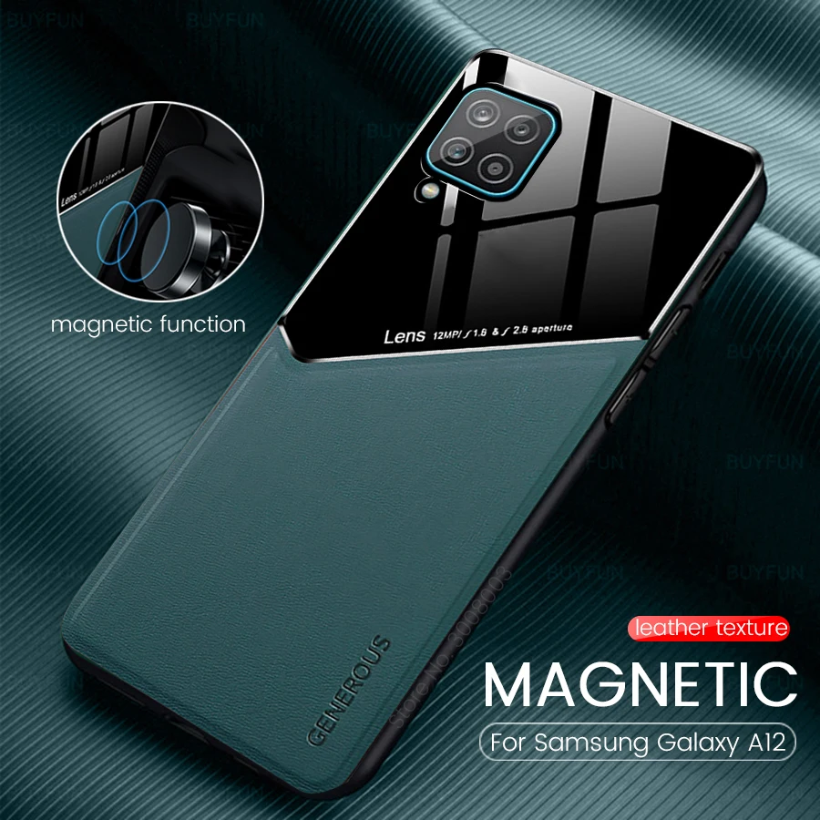 Чехол для samsung a 12 с кожаной текстурой, автомобильный магнитный держатель pixleglass, чехлы для телефонов galaxy a12, Мягкий Силиконовый противоударный чехол