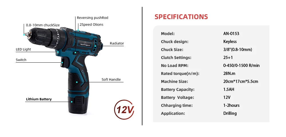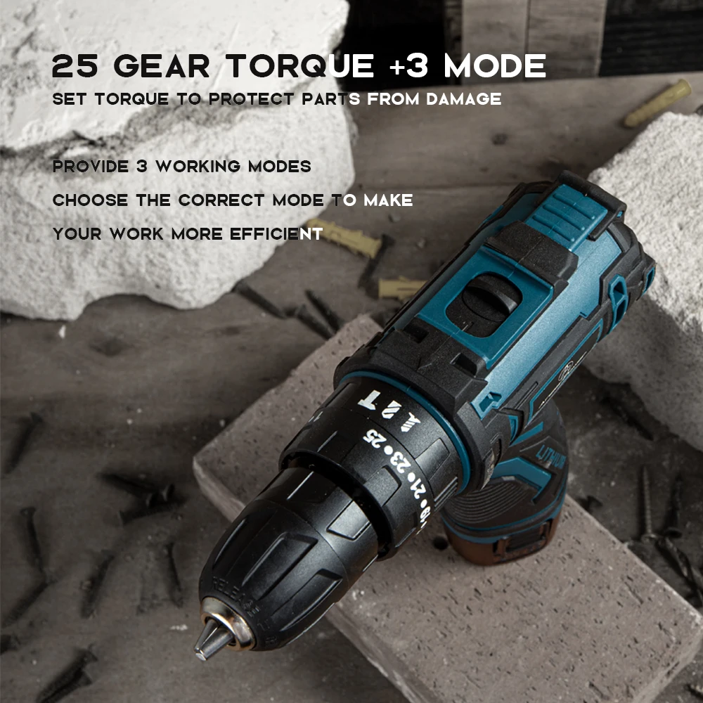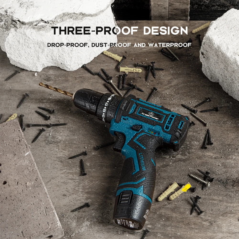 Дрель ударная аккумуляторная, 12 В, водонепроницаемая, 3 функции