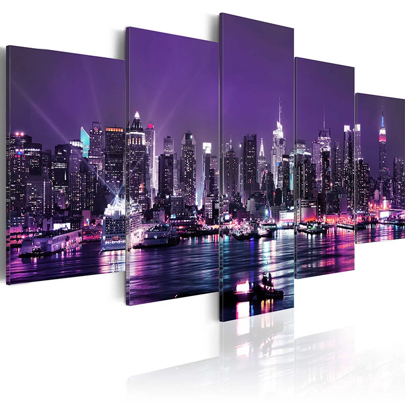 Картина на холсте, искусство на стену, HD печать, 5 шт., пейзаж Нью-Йорка, Ранняя Современная рамка для гостиной, Модульная картина