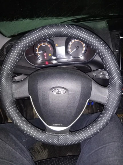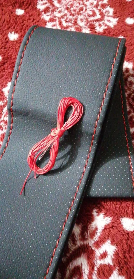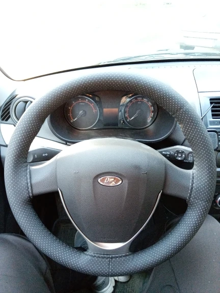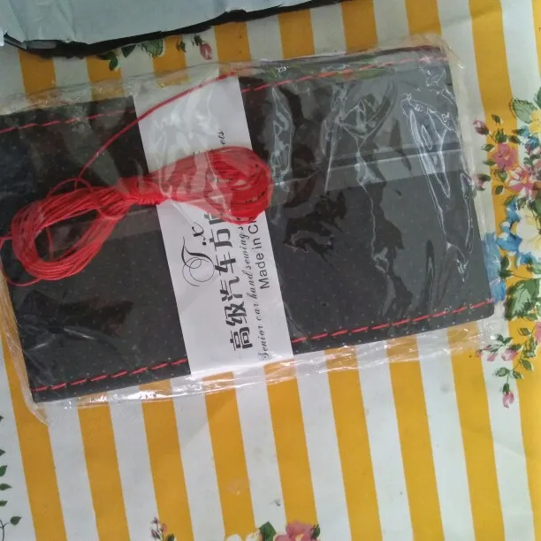 Руль перетянула, качество хорошее. В комплекте длинная нить, иголка и сам кожух на руль. Кожзам мягкий и руль держать комфортно.
