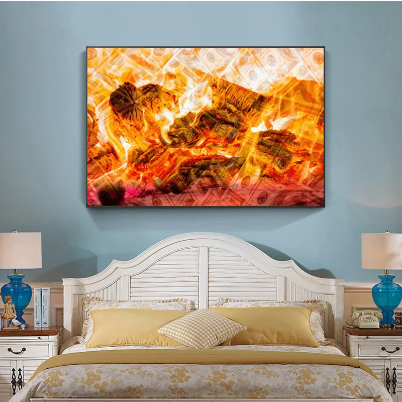 Огнем пламя фон художественный холст картины 3D огонь плакаты о деньгах и принты настенные картины для Гостиная домашний декор