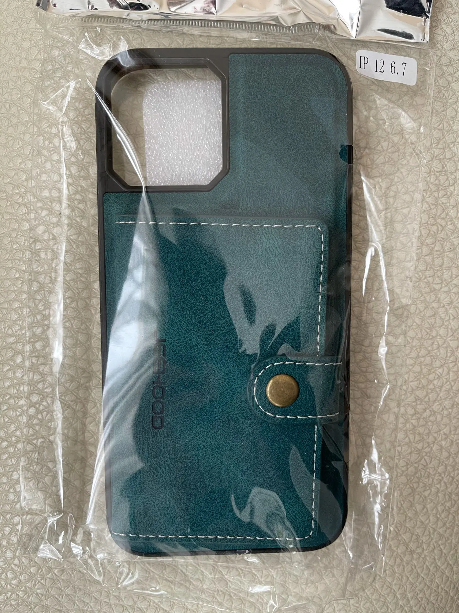 Чехол-накладка для iPhone 12, 13, 11 Pro Max, XS, XR, X, SE 2020, 8, 7 Plus, кожаный, с отделением для карт, магнитный, съемный