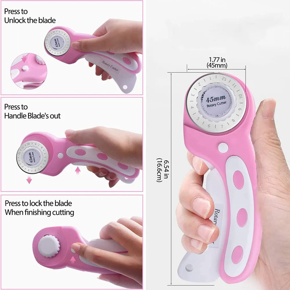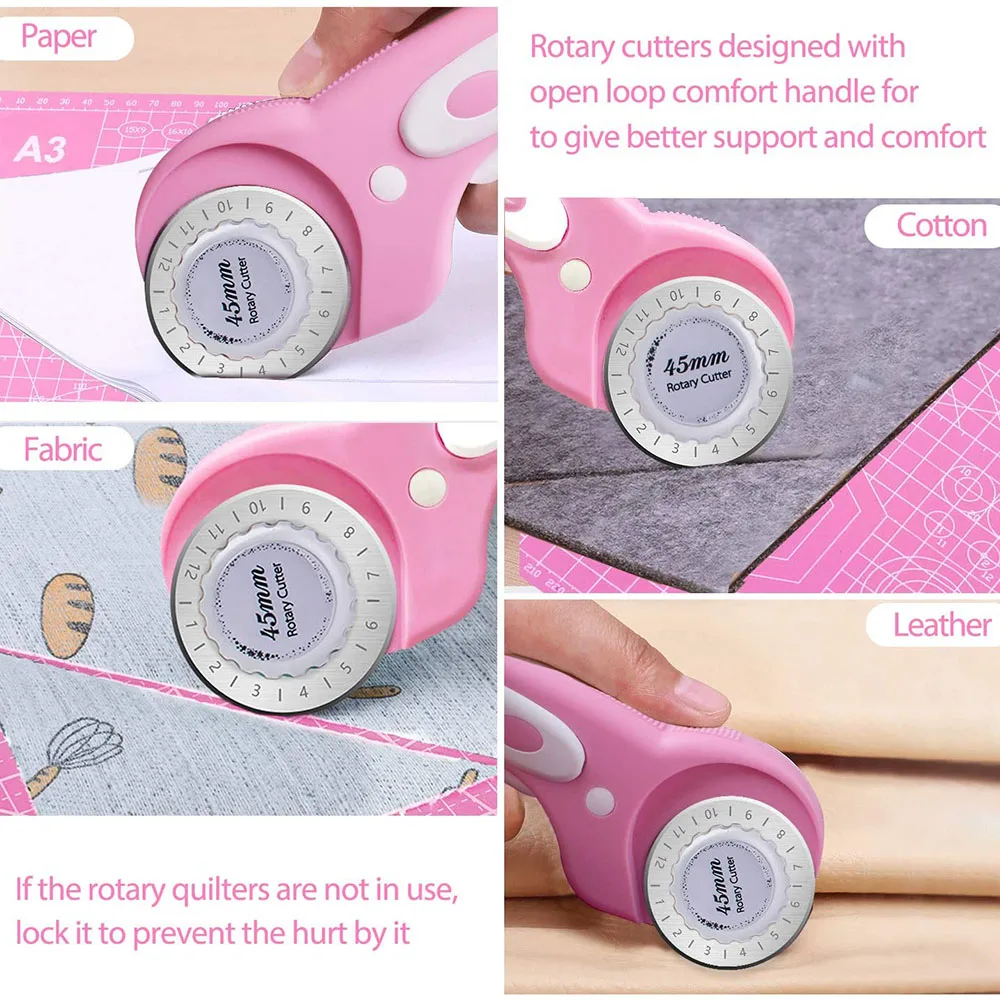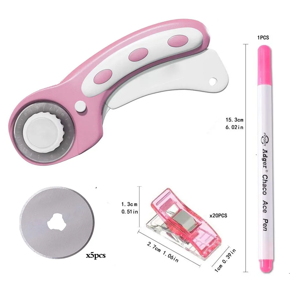 Набор роторных резаков 45 мм, со сменными лезвиями, швейными зажимами для квилтинга и швейным маркером для резки ткани и кожи