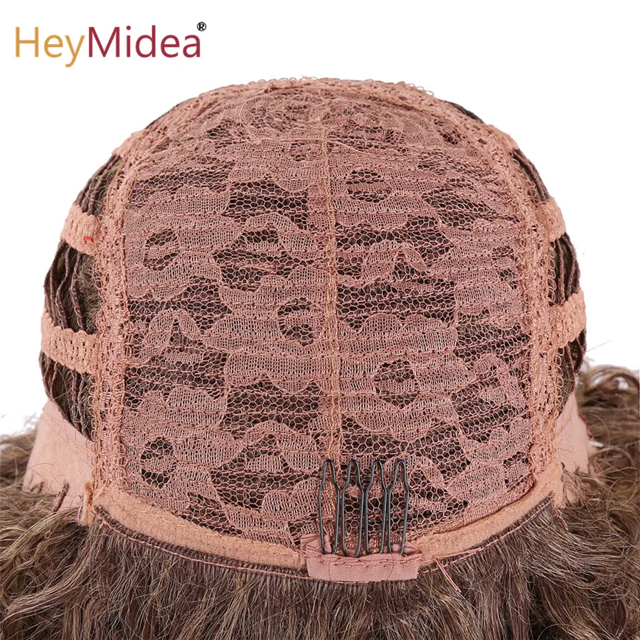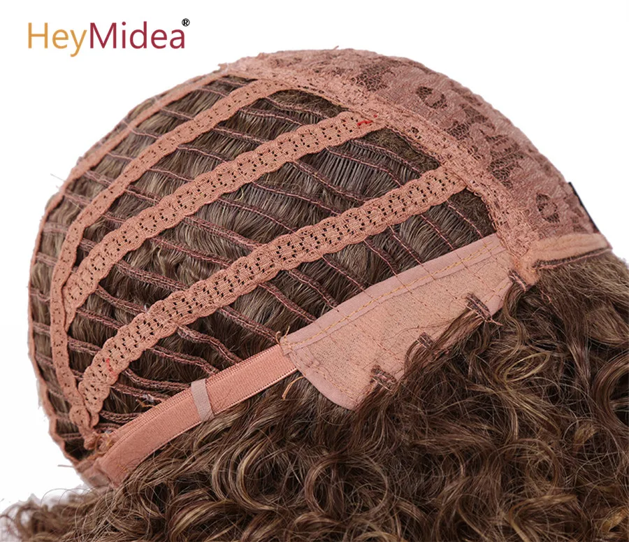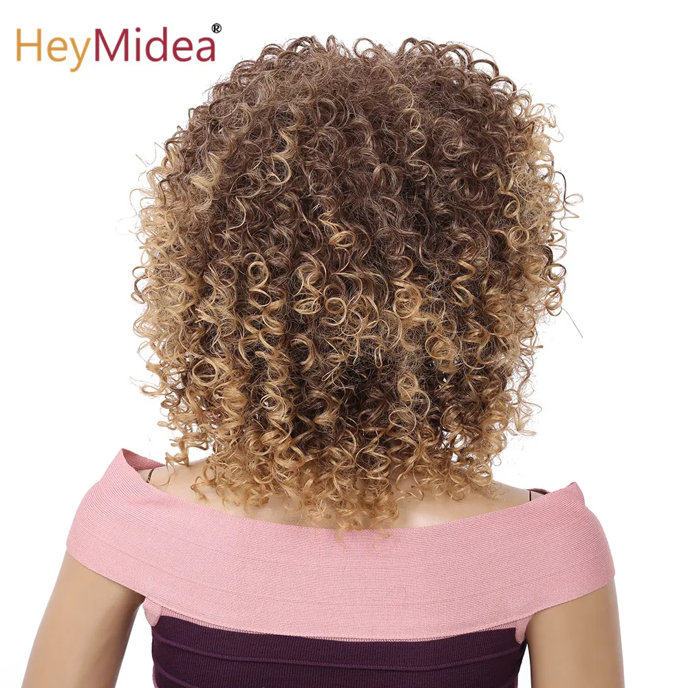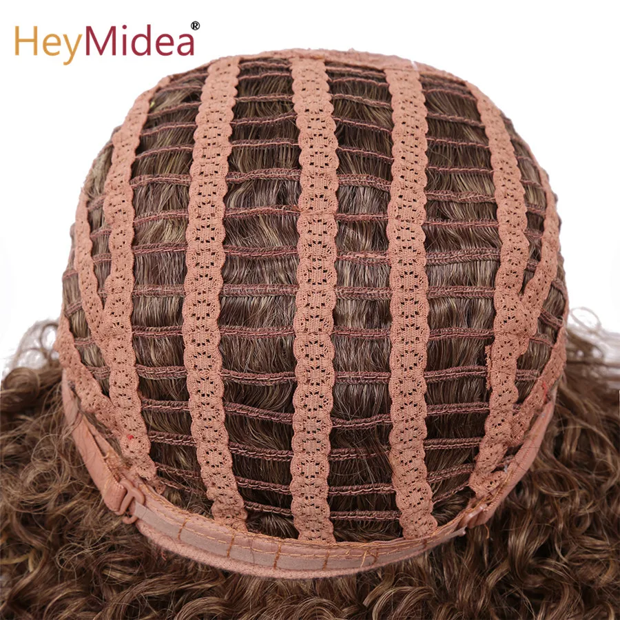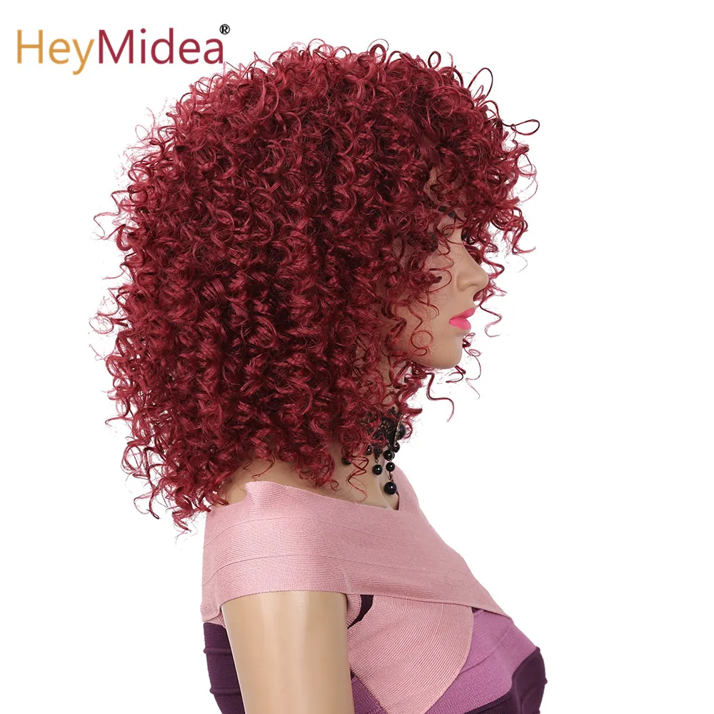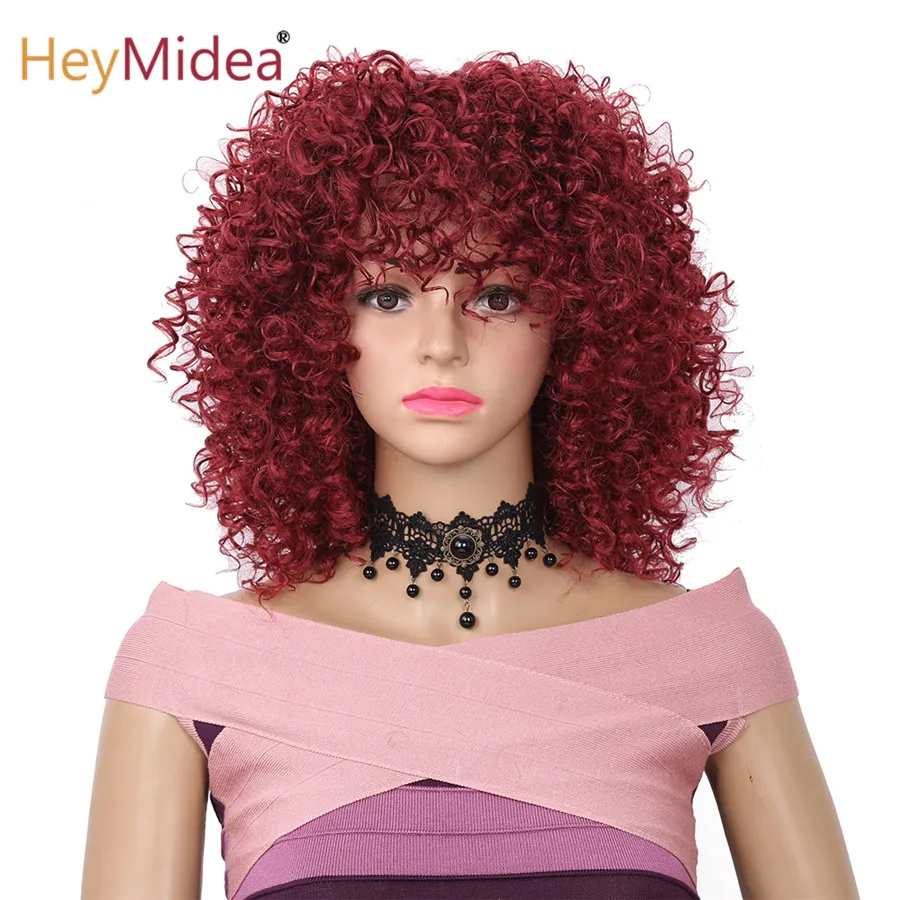 Афро кудрявый парик с челкой, короткие кудрявые вьющиеся парики для женщин, синтетические термостойкие мягкие волосы, короткий кудрявый афро коричневый парик HeyMidea