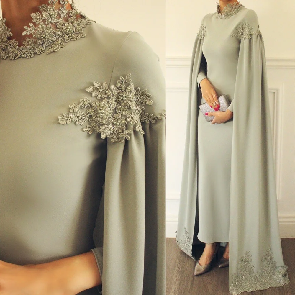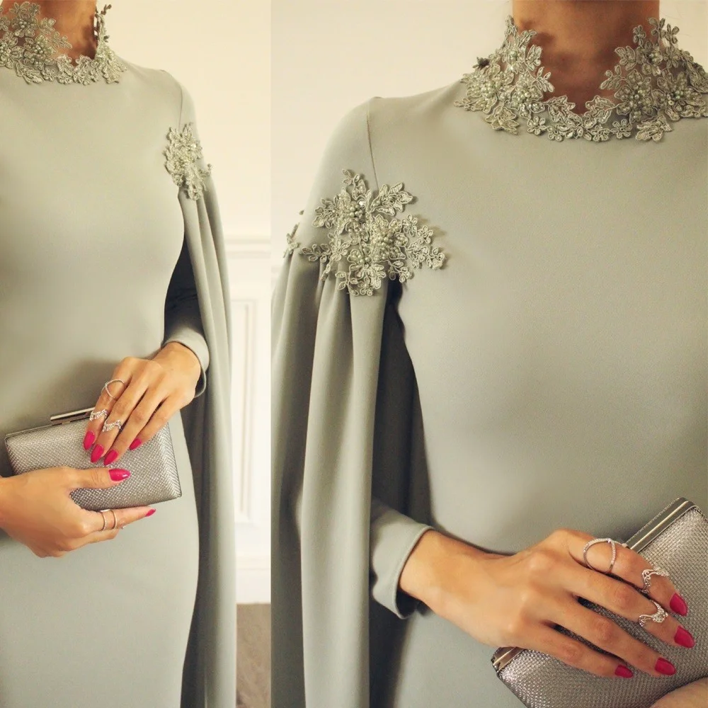 Дубай Kftan мусульманские Вечерние платья с высоким воротом и пелер...