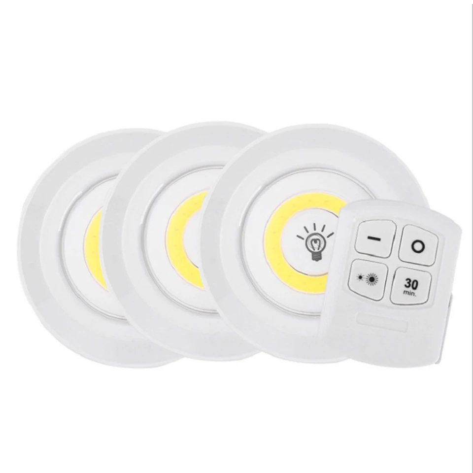 3 Вт COB диммируемая светодиодная подсветка под шкаф с пультом дистанционного управления Управление Батарея управляемая LED шкафы светильники для Кабинета шкаф Кухня освещение
