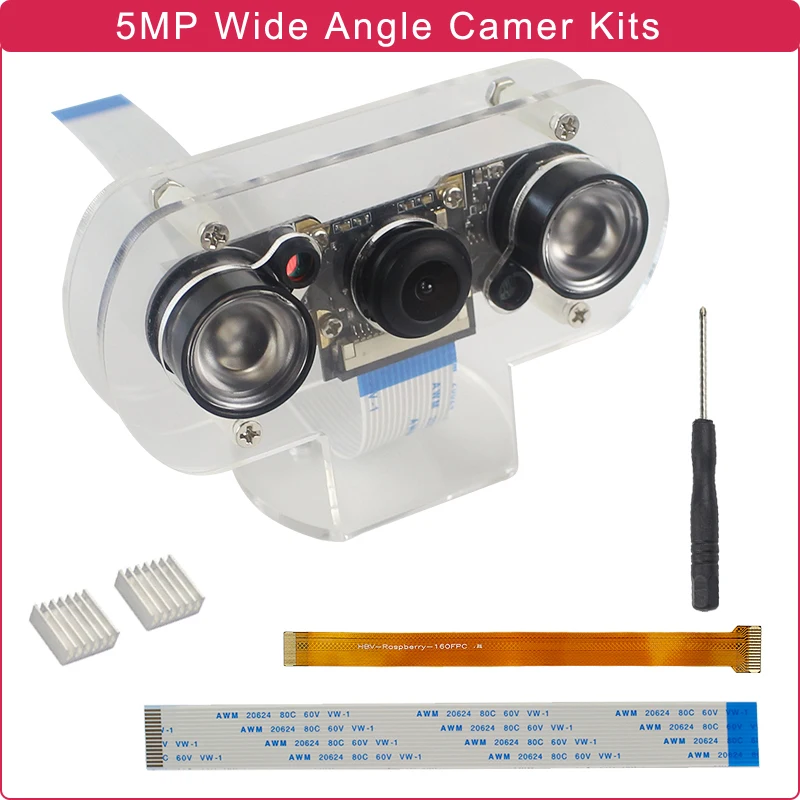 5MP Raspberry Pi камера ночного видения 130 ° широкоугольная камера рыбий глаз + светильник с ИК-датчиком для Raspberry Pi 4 Модель B/3B +/3B/Zero W