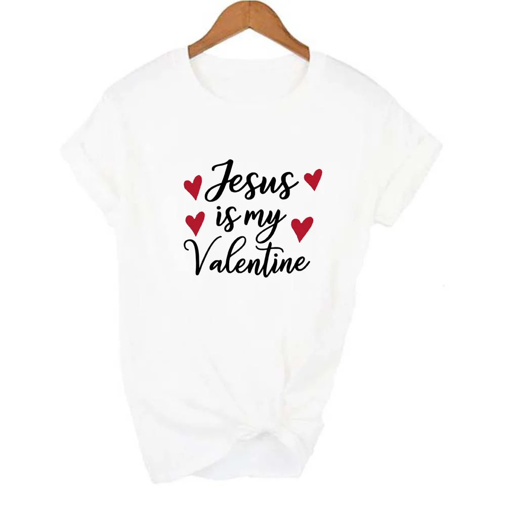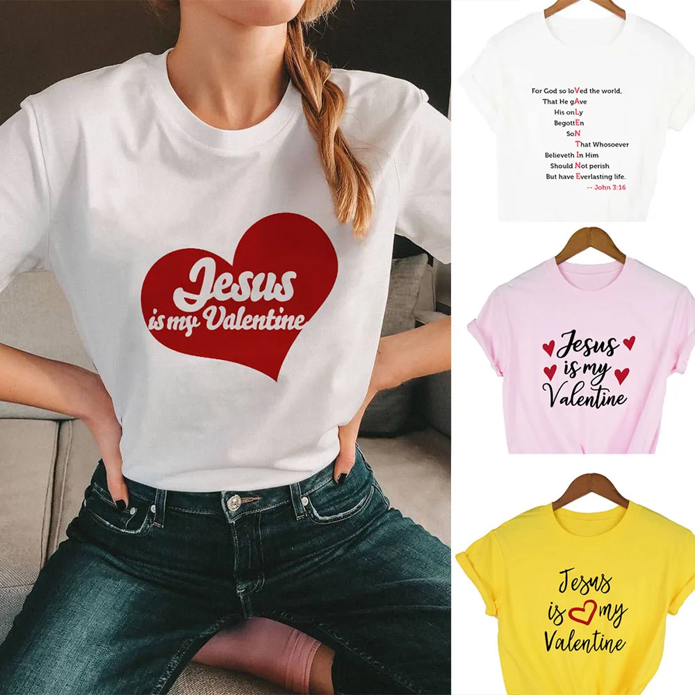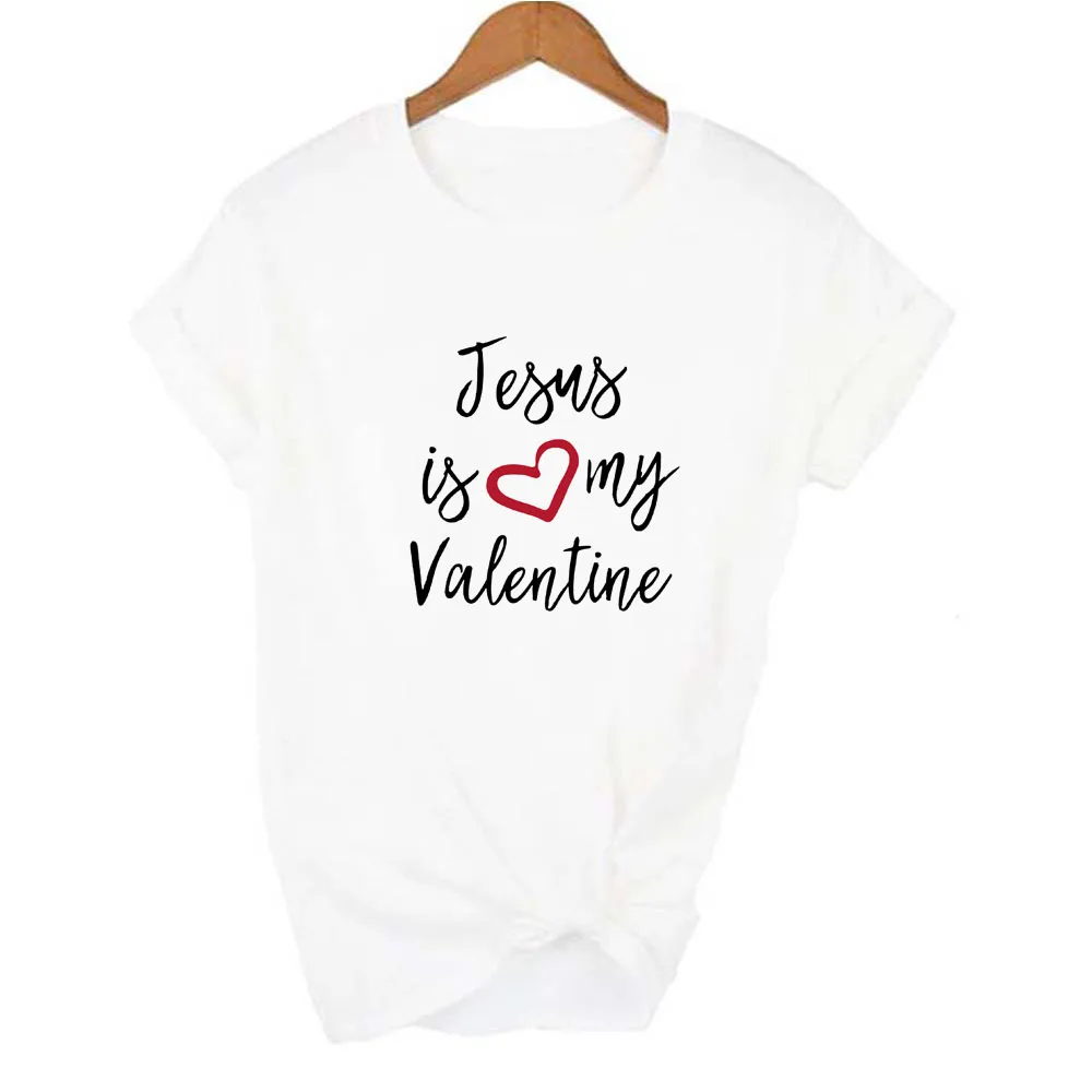 И надписью Jesus Is My Valentine Бог христианский женские Графический Футболка с короткими рукавами на День святого Валентина, День Любовь Harajuku женские футболки Camisetas Mujer