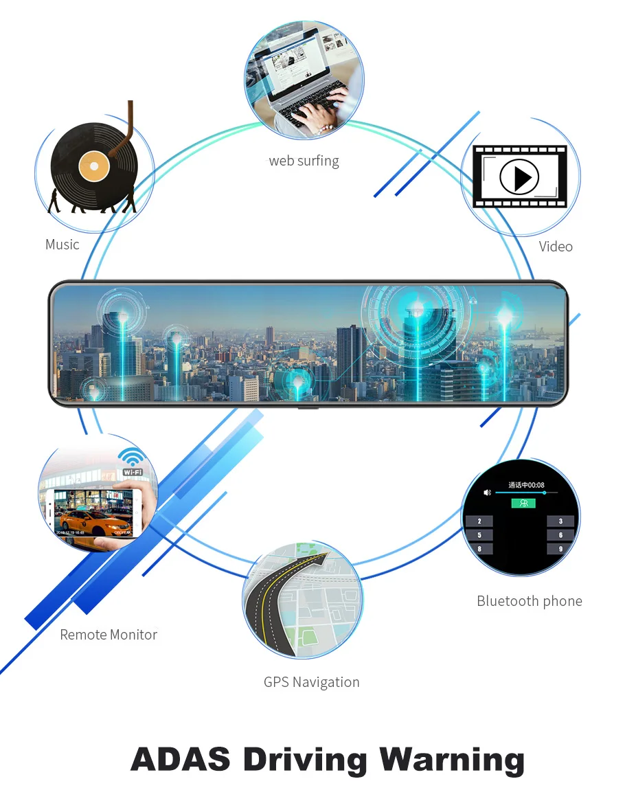 Оснащен задней камерой записи 1080P, вы можете одновременно записывать фронтальные и задние камеры и одновременно просматривать изображения обеих камер на зеркале.