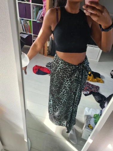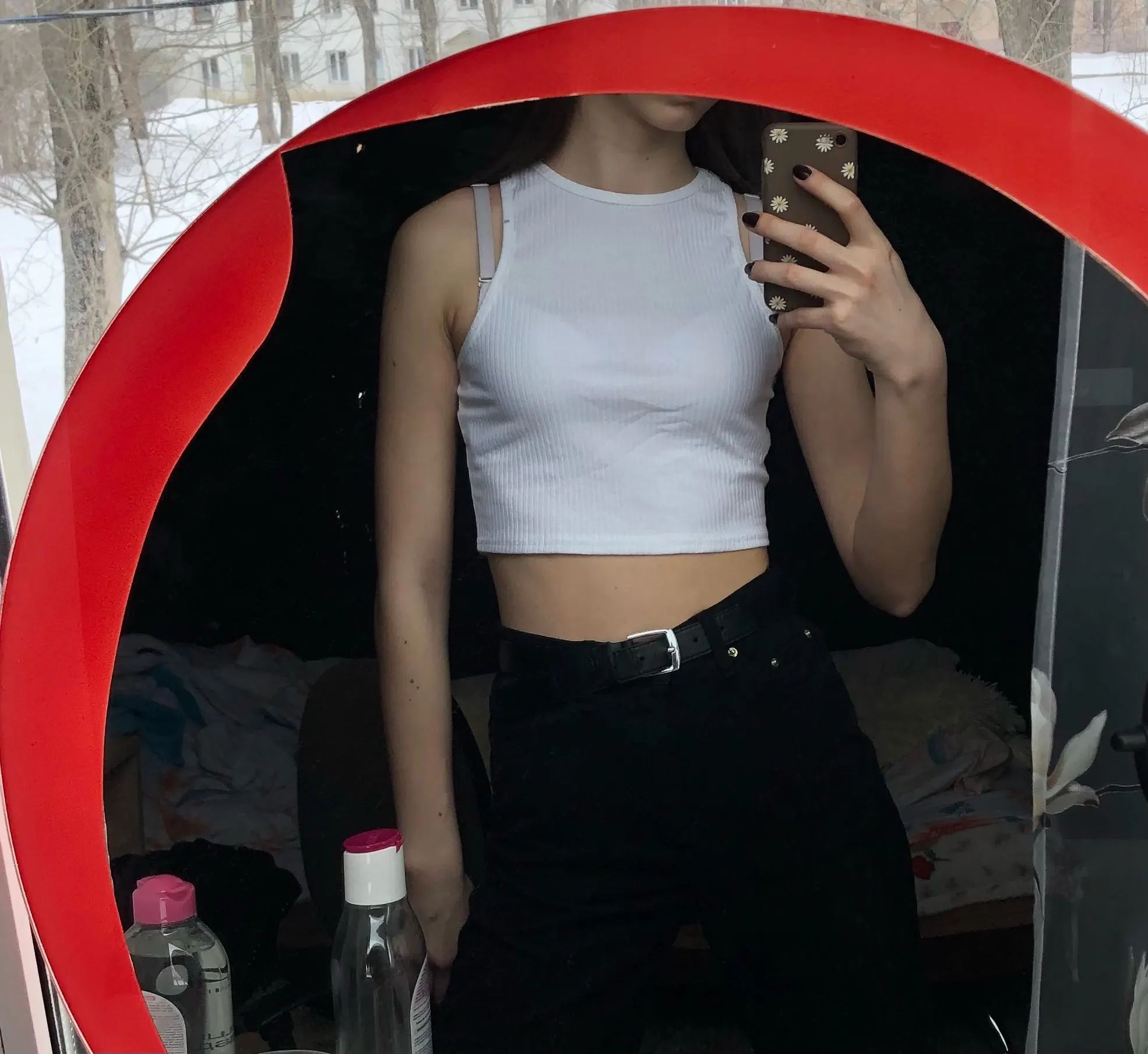 Хороший топик На ОБ 85 S подошёл идеально Не висит, идёт по талии Плотный, сшит хорошо, пару ниточек на лямках было, но это вообще не критично Думаю ещё заказать пару Быстрая доставка в Краснодар (чуть больше месяца) и хороший продавец Кстати в жизни намного лучше смотрится