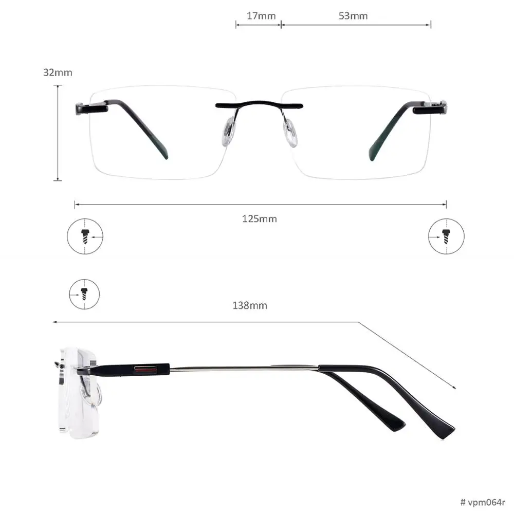 Металлическая оправа для очков унисекс, прямоугольная, без оправы, с памятью формы, для близорукости, пресбиопии