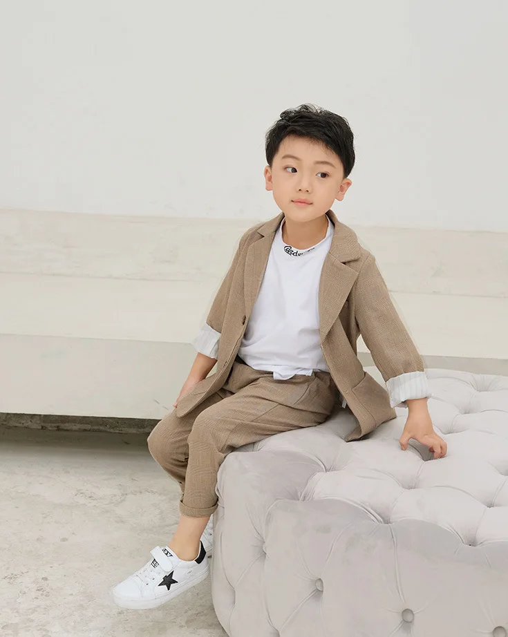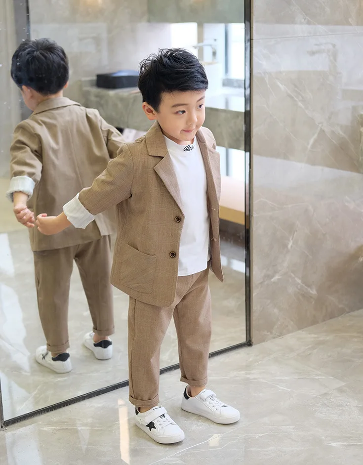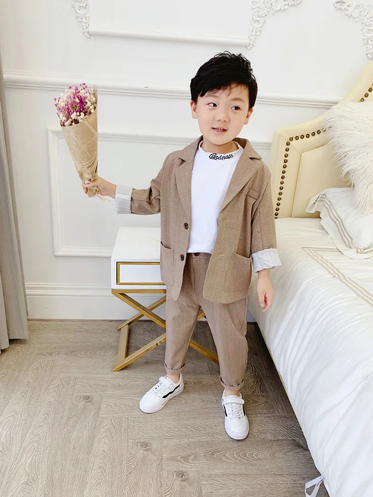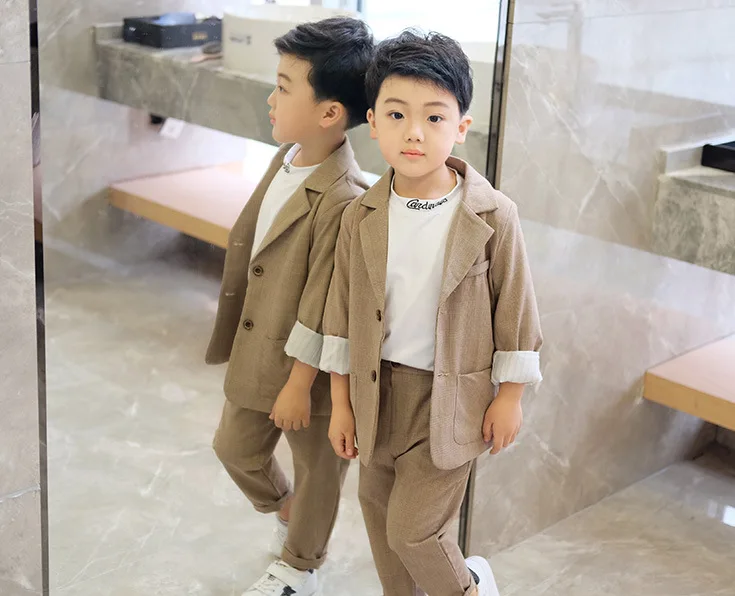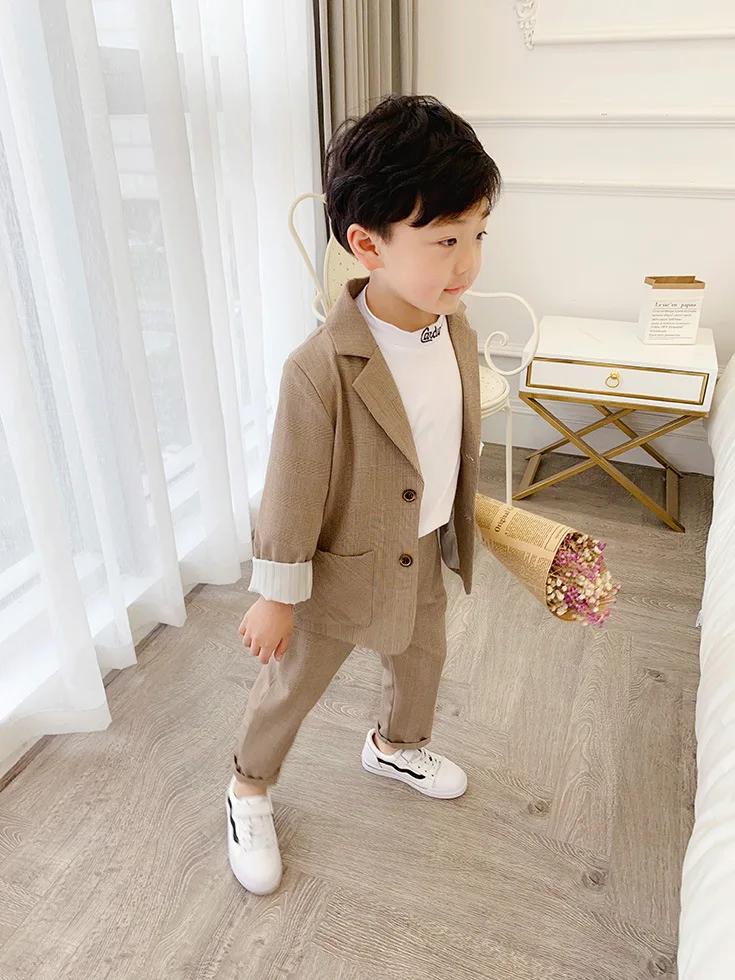 Комплект одежды для мальчиков и девочек, повседневный весенне-летний костюм из блейзера и штанов, 2 шт.