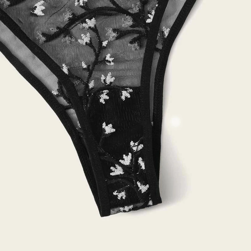 Комплект женского нижнего белья, прозрачный, кружевной, с вышивкой