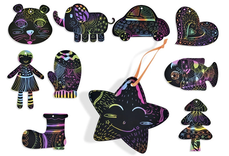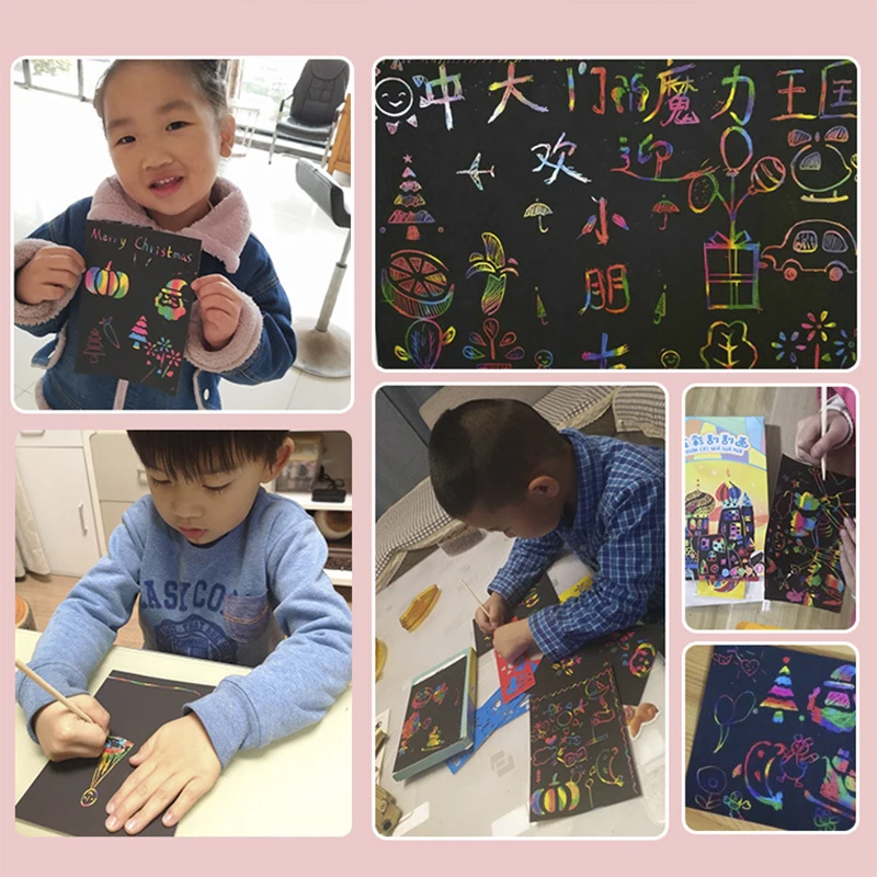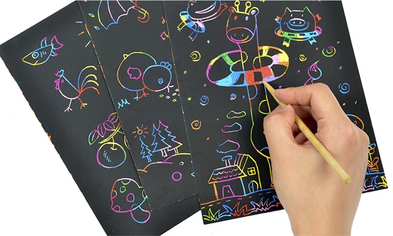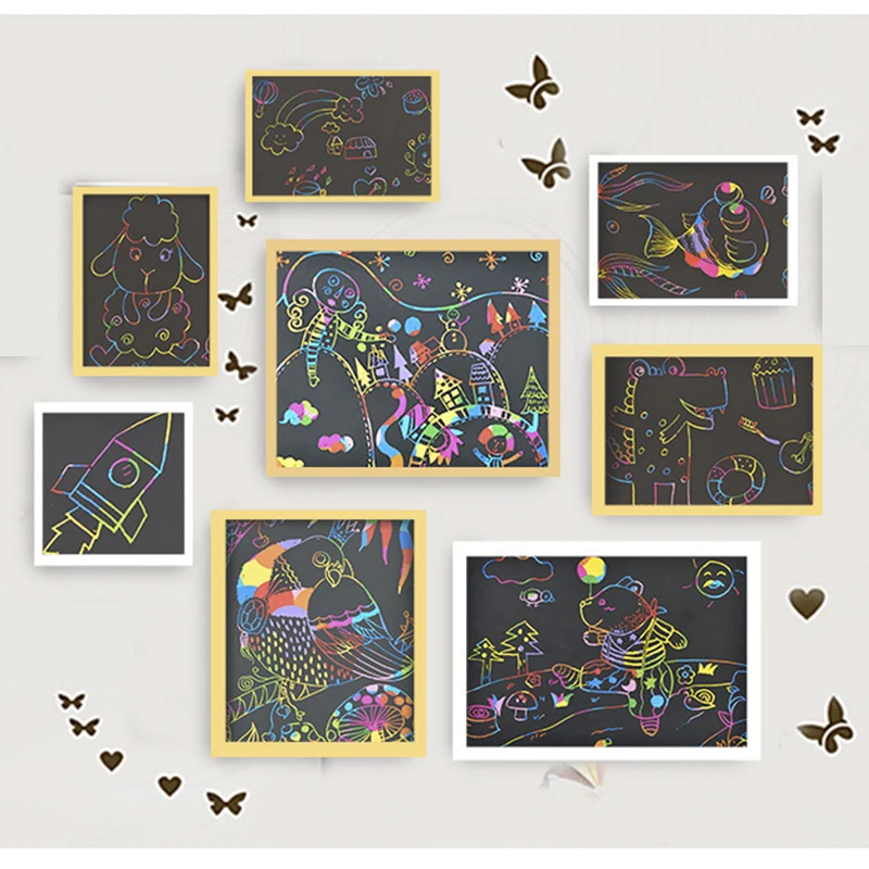 Магия радуги Цвет бумага для скретч арта набор карт с трафарет для граффити доска для рисования палка DIY живопись развивающие игрушки подарок
