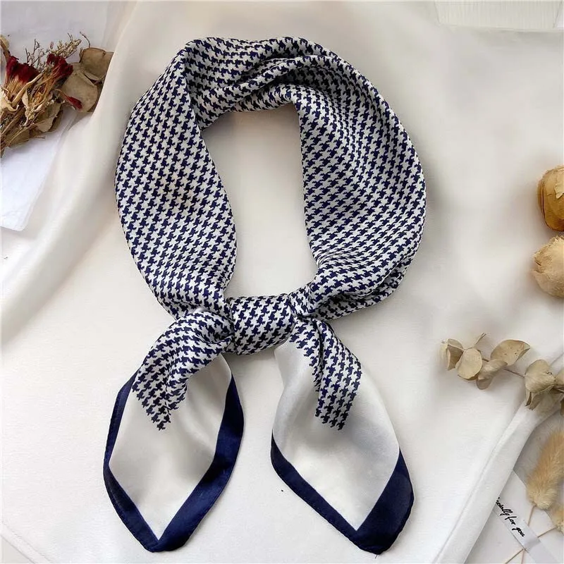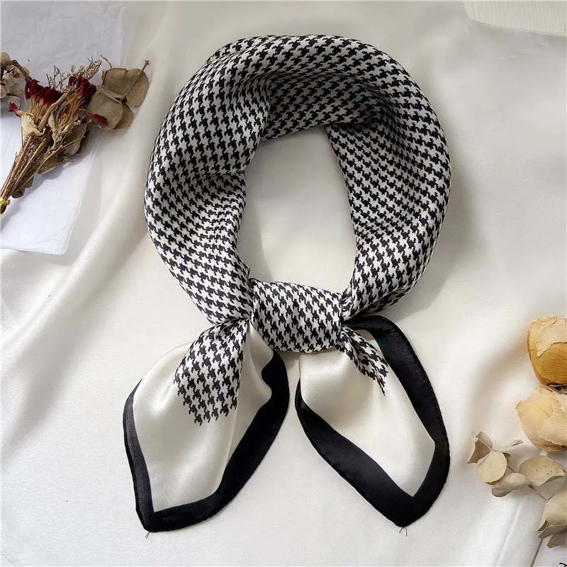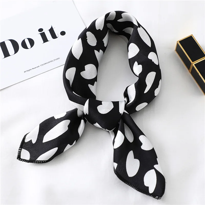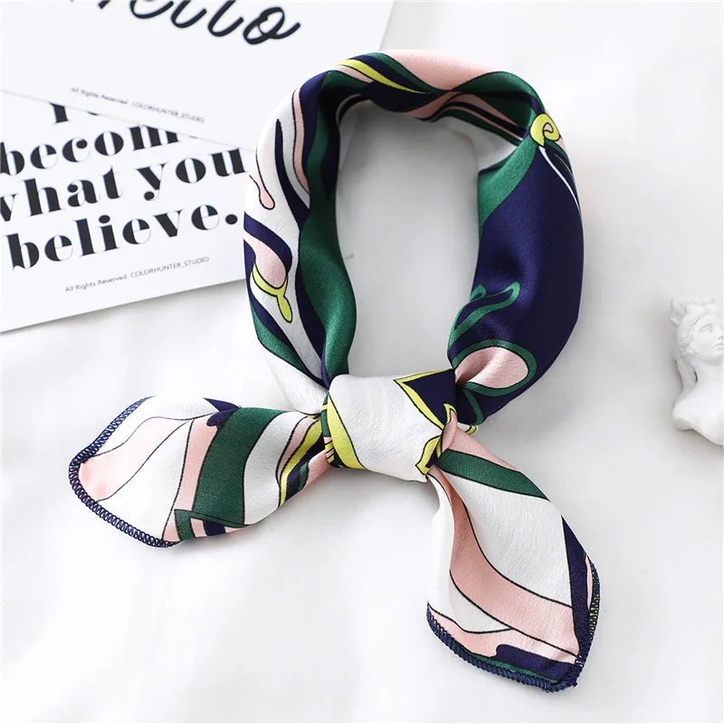 Шелковый шарф квадратной формы для женщин; Модный принт шеи шарфы палантины Офисная Женская резинка для волос платки ручной Косынка женская Бандана шаль 2021