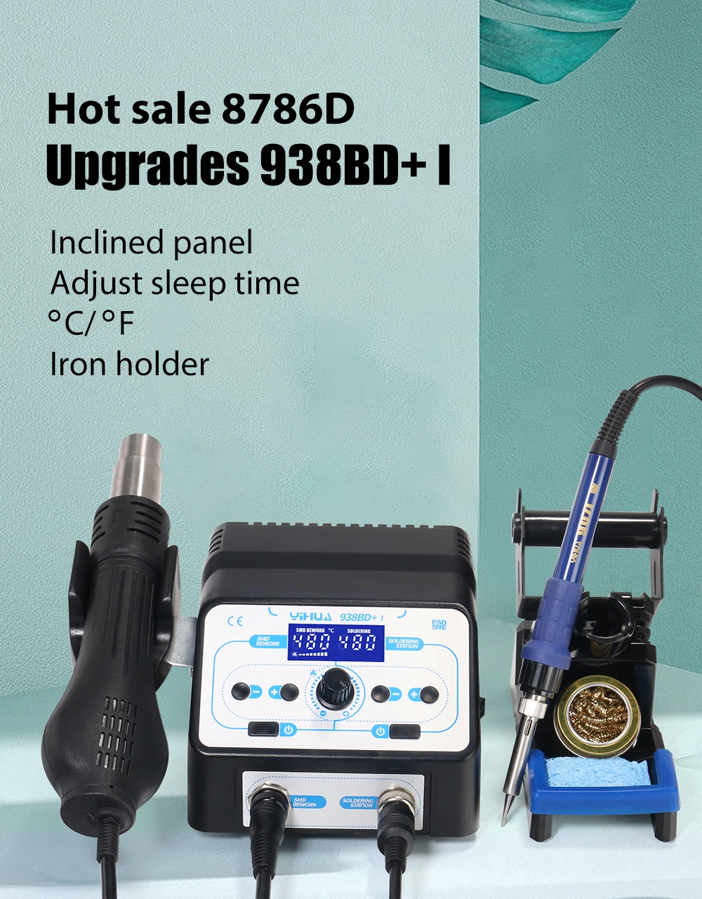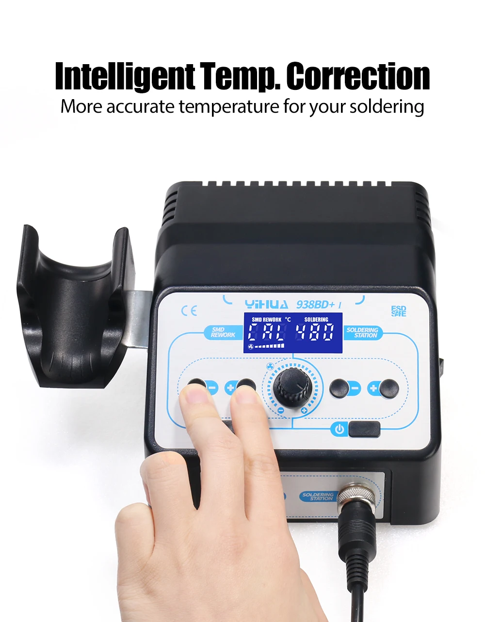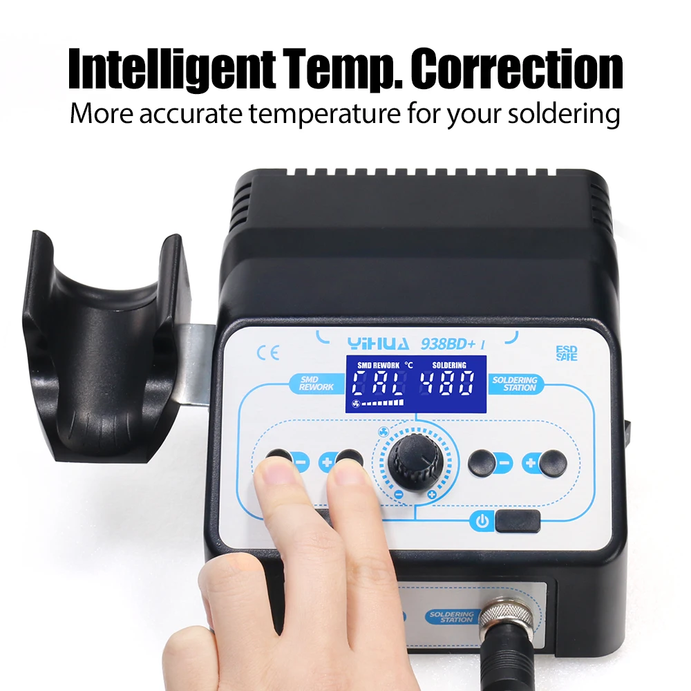 Паяльная станция YIHUA 938BD +-I 750 Вт, паяльная станция со снижением яркости, паяльная станция с ЖК-дисплеем и термофеном