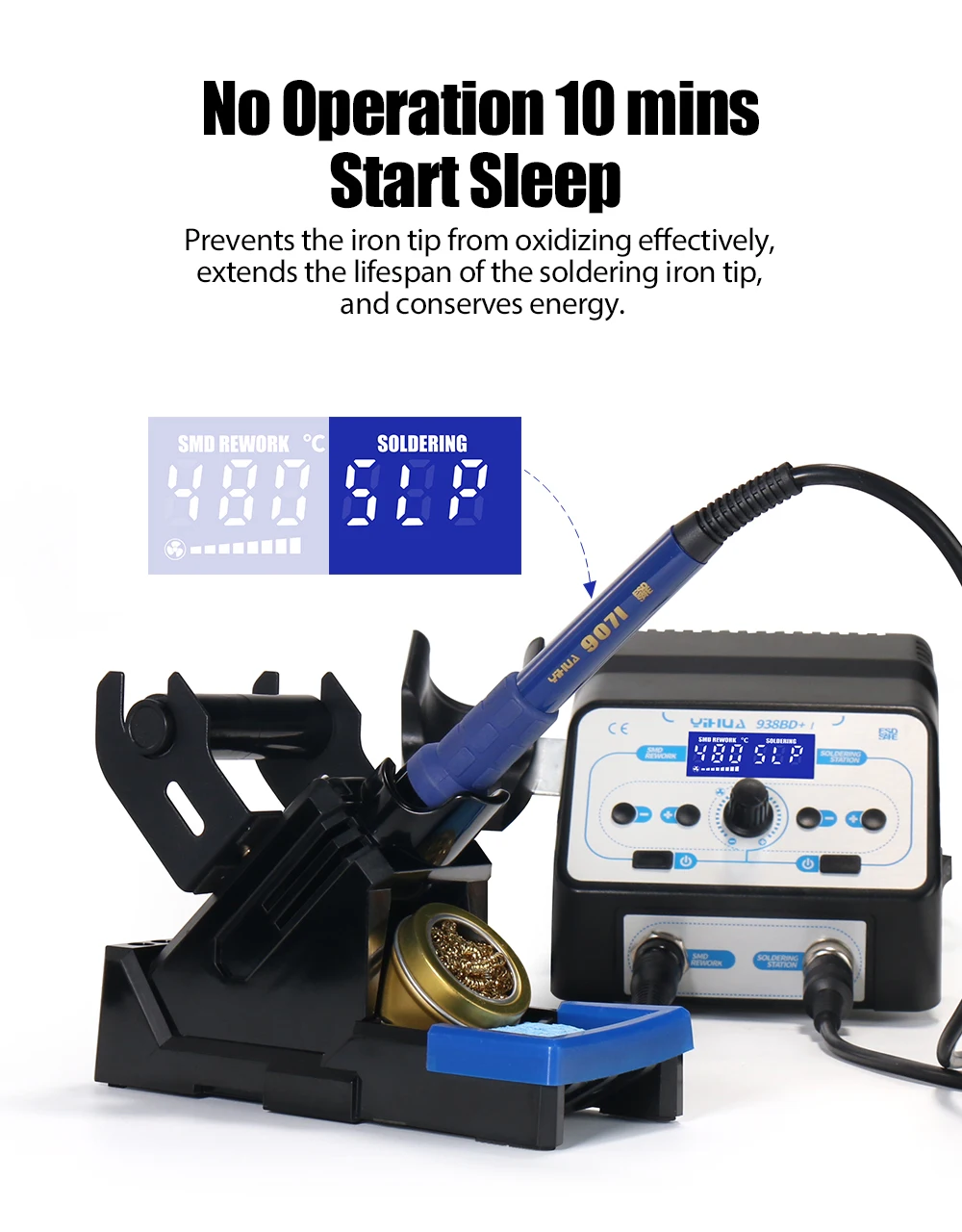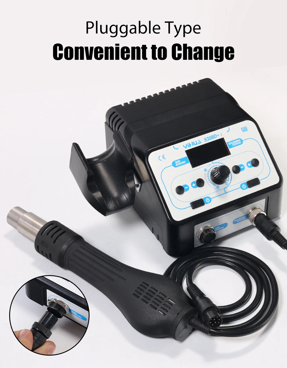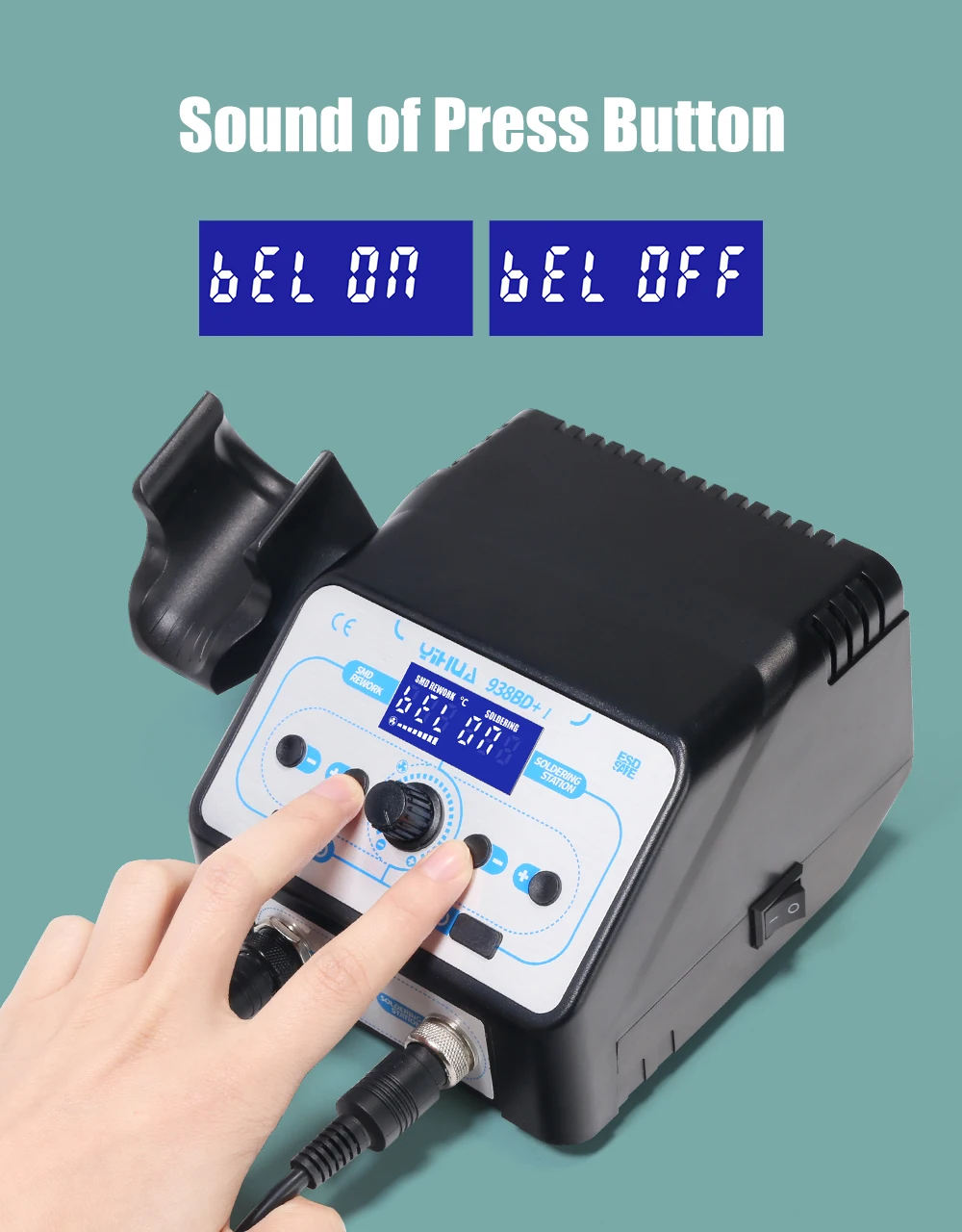 Паяльная станция YIHUA 938BD +-I 750 Вт, паяльная станция со снижением яркости, паяльная станция с ЖК-дисплеем и термофеном