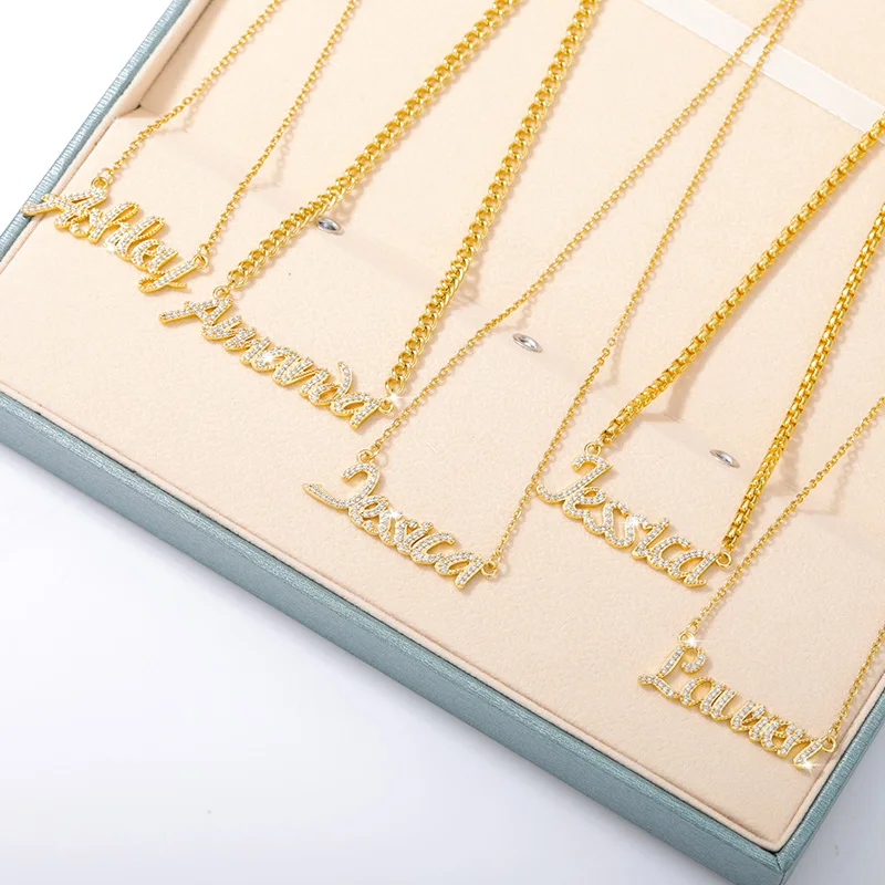 Ожерелье в стиле панк с цирконием для женщин, персонализированная цепь с панцирным плетением, ожерелья с табличкой из нержавеющей стали, искусственные подарки