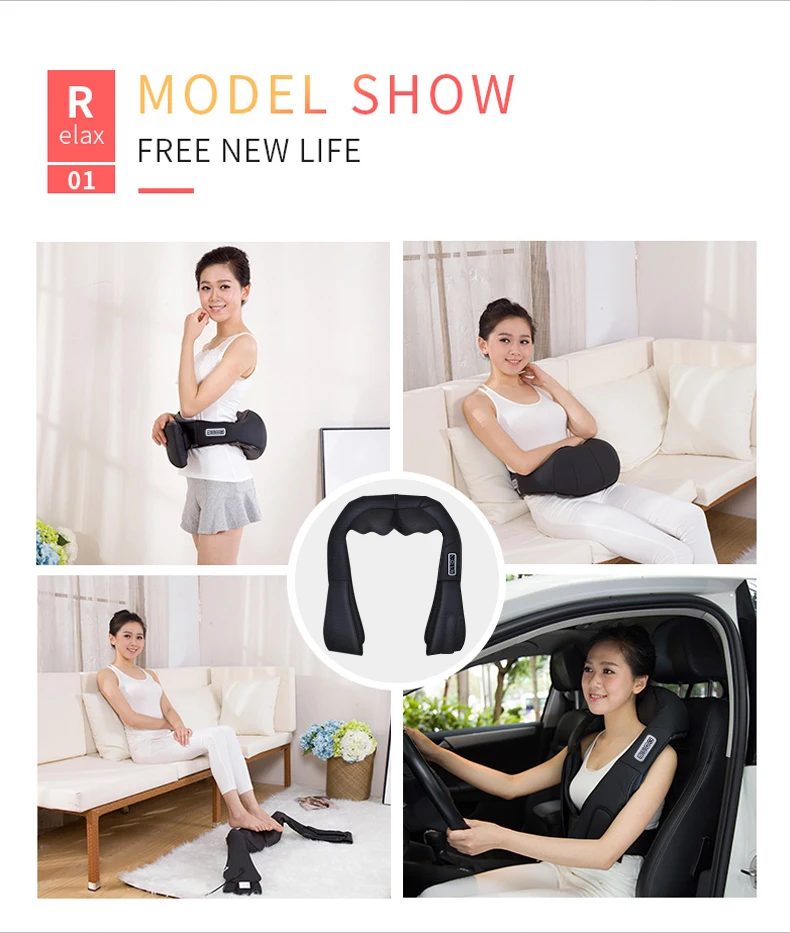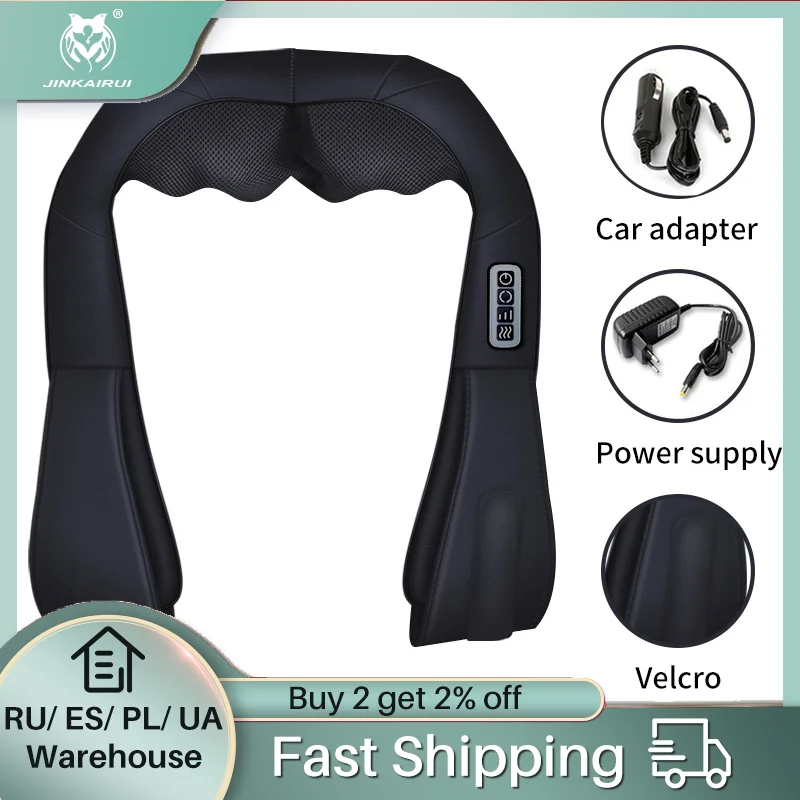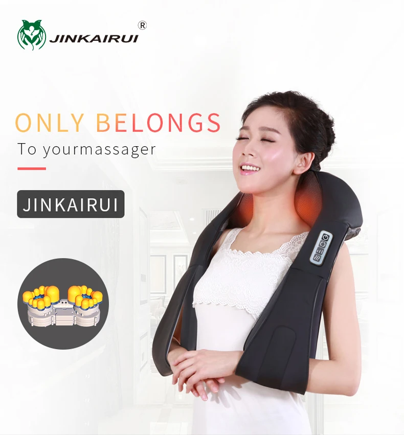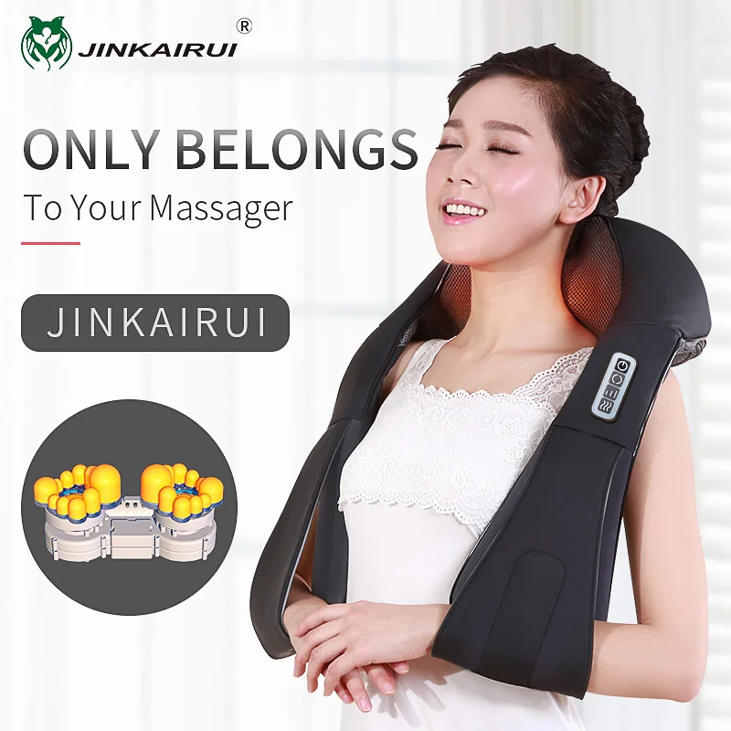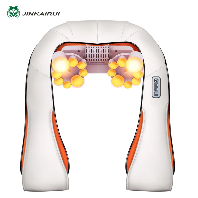 U-образная массаж шеи шиацу шаль Jinkairui, 4 кнопки, с инфракрасным подогревом, для разминания, двойного назначения, для дома и автомобиля, подарок, облегчение боли