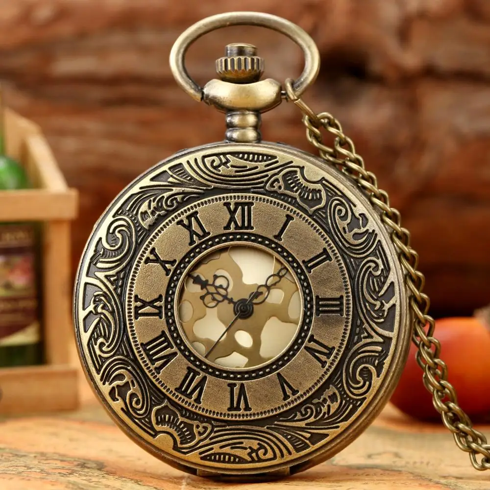 Ретро бронзовые полые кварцевые карманные часы с римскими цифрами, ...