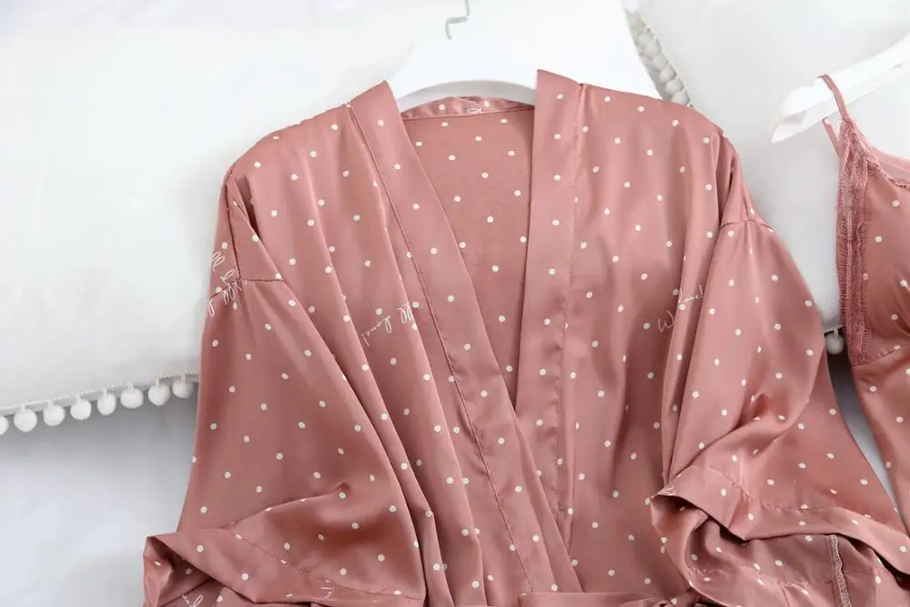 Женский пижамный комплект из 4 предметов, шелковая пижама из 2021 шелка, пикантная одежда для сна, Весенняя Пижама, кимоно, халат, кружевное нижнее белье