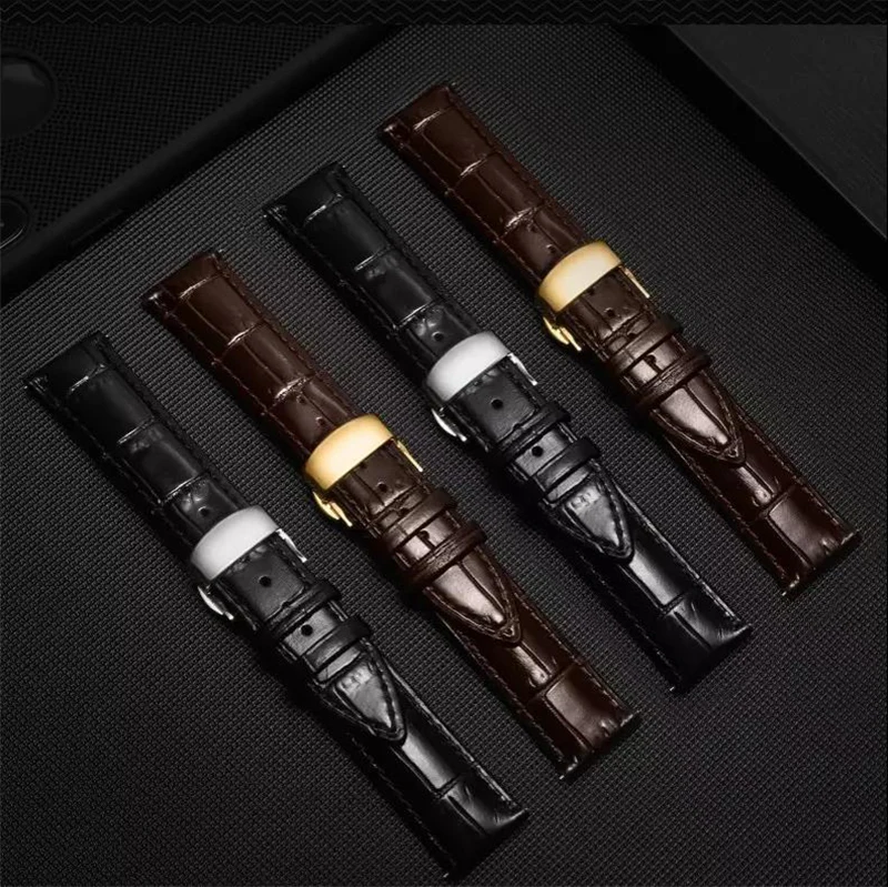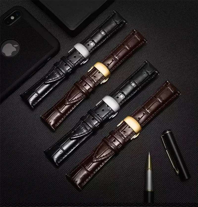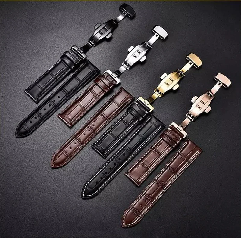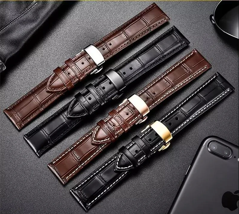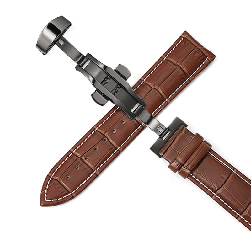 Ремешок кожаный с автоматической застежкой-бабочкой, браслет для наручных часов, 20 мм, 12-24 мм, 22 мм