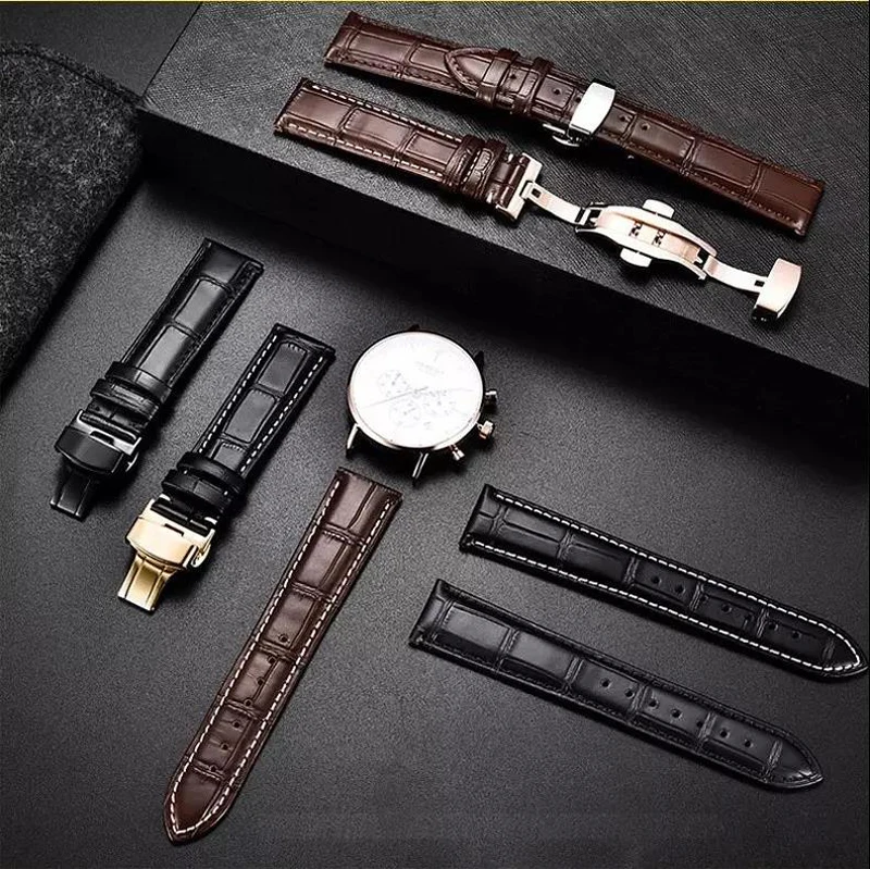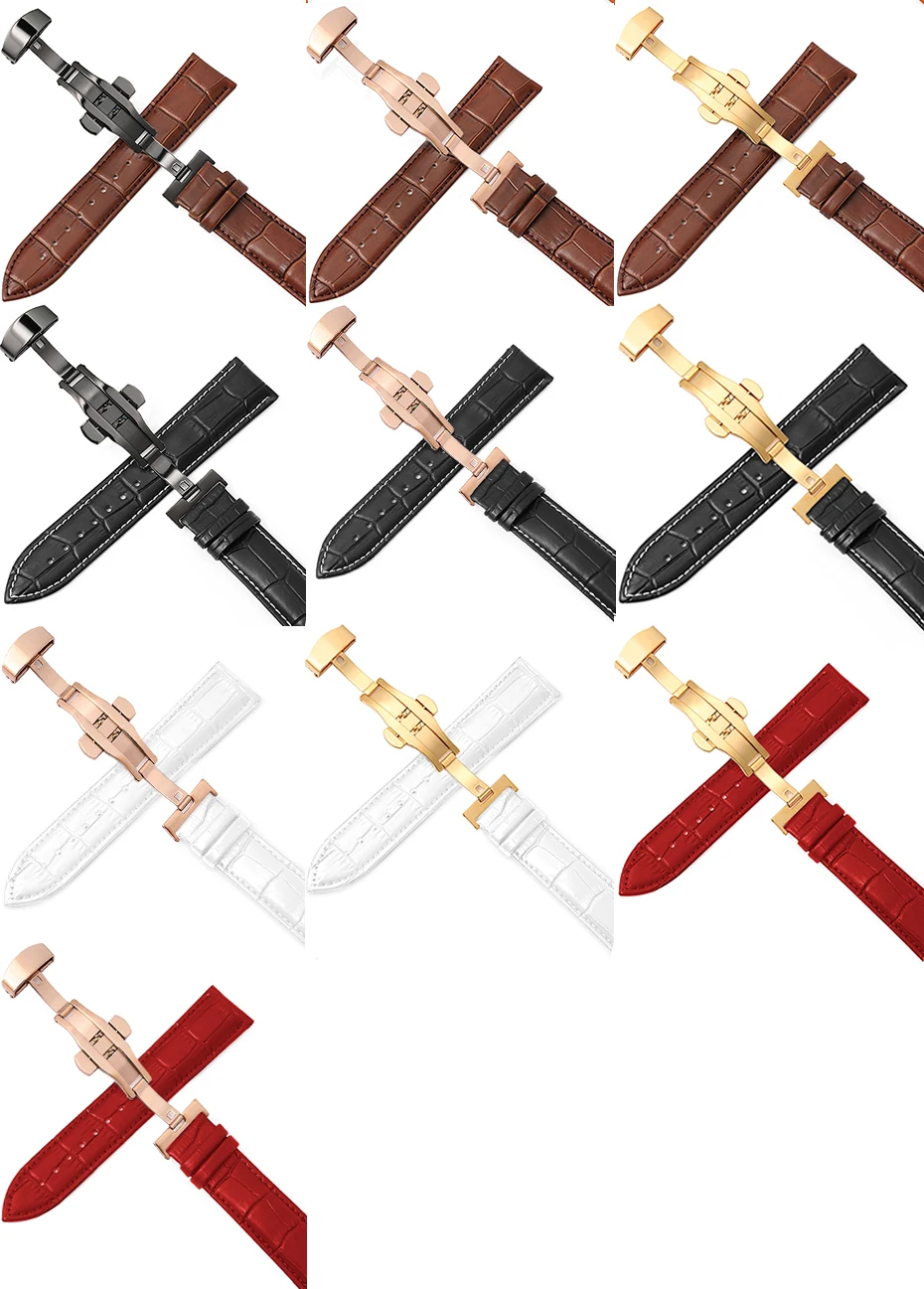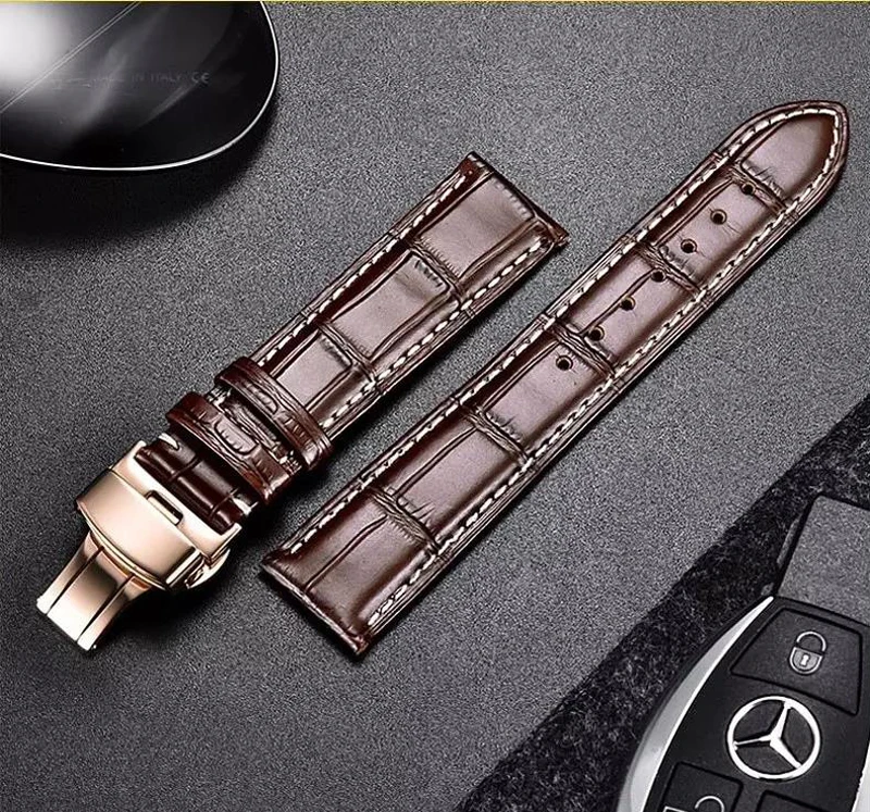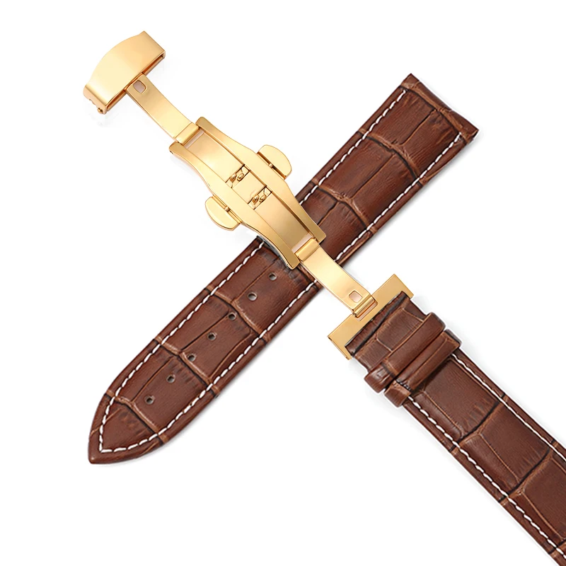 Ремешок кожаный с автоматической застежкой-бабочкой, браслет для наручных часов, 20 мм, 12-24 мм, 22 мм