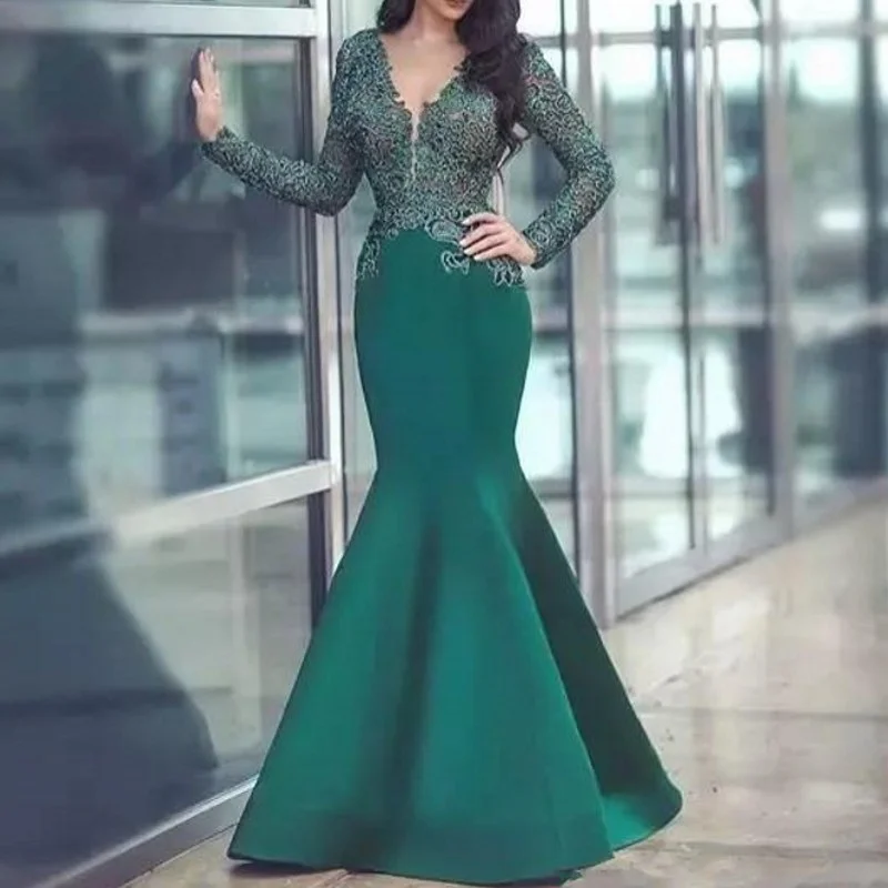 Вечерние платья Funyue с длинными рукавами, вечернее платье с глубо...
