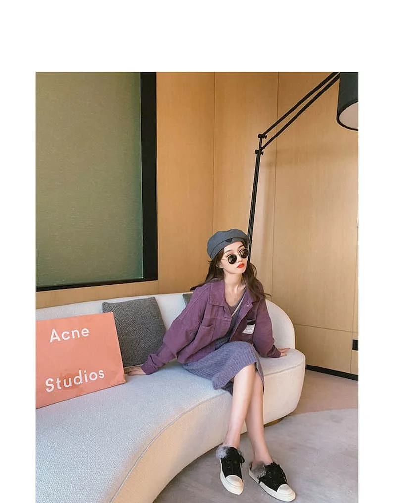 Жилет женский трикотажный, пурпурный, оверсайз, в Корейском стиле